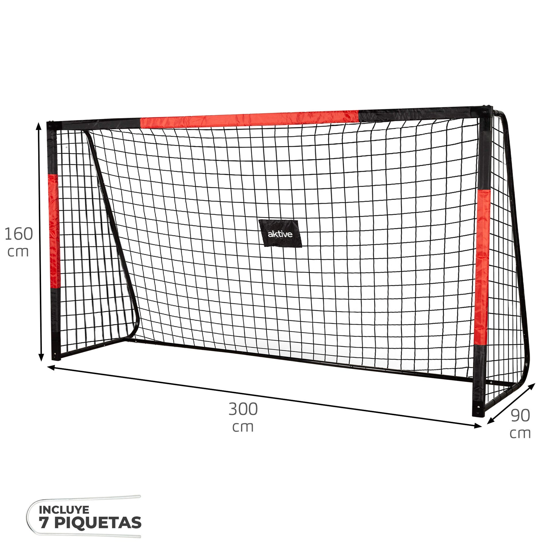 Esta portería Aktive es ideal para disfrutar de auténticos partidos al aire libre. Con unas dimensiones de 300x160x90 cm y una estructura de acero resistente, ofrece estabilidad y durabilidad durante el juego. Su red de poliéster absorbe bien los impactos y mantiene su forma.