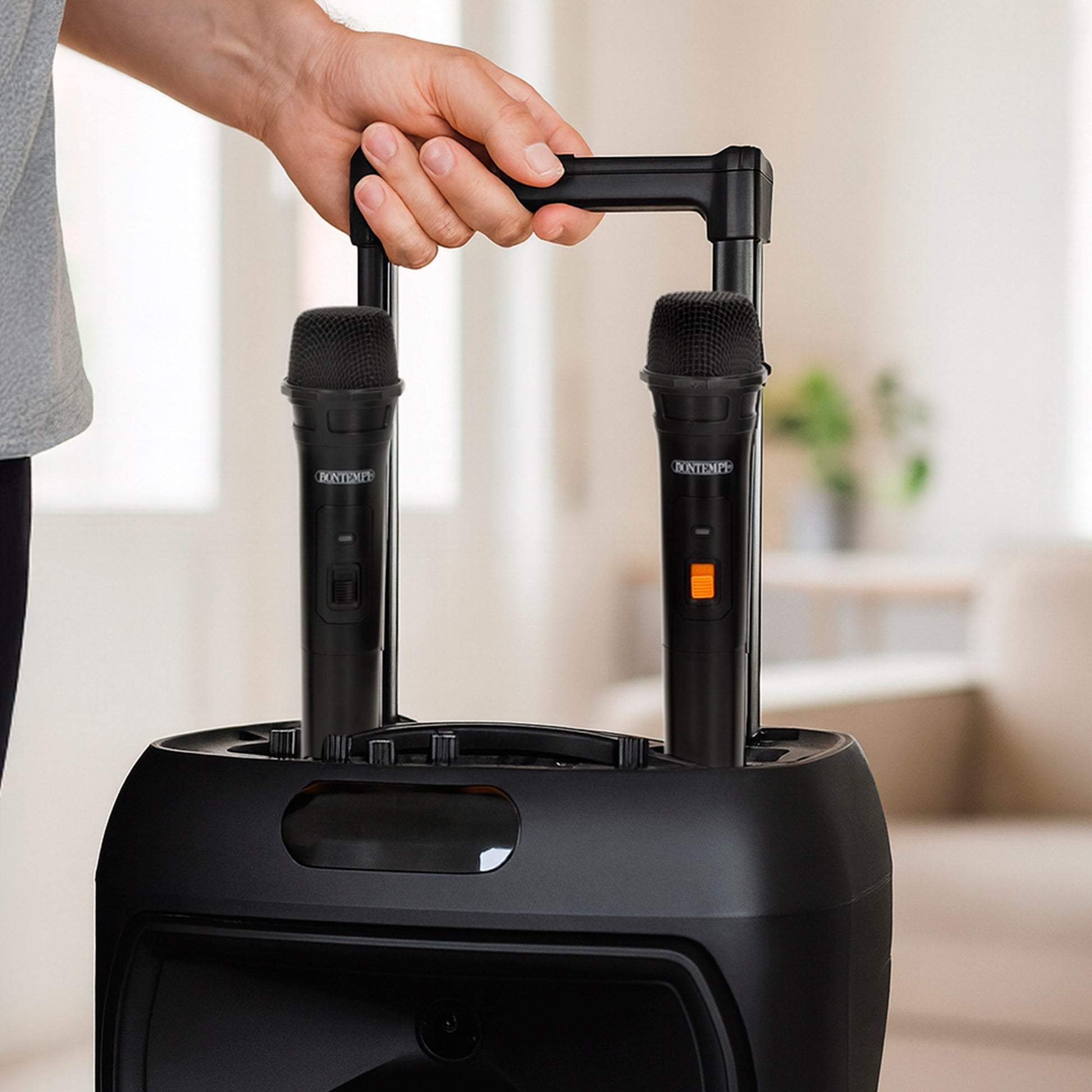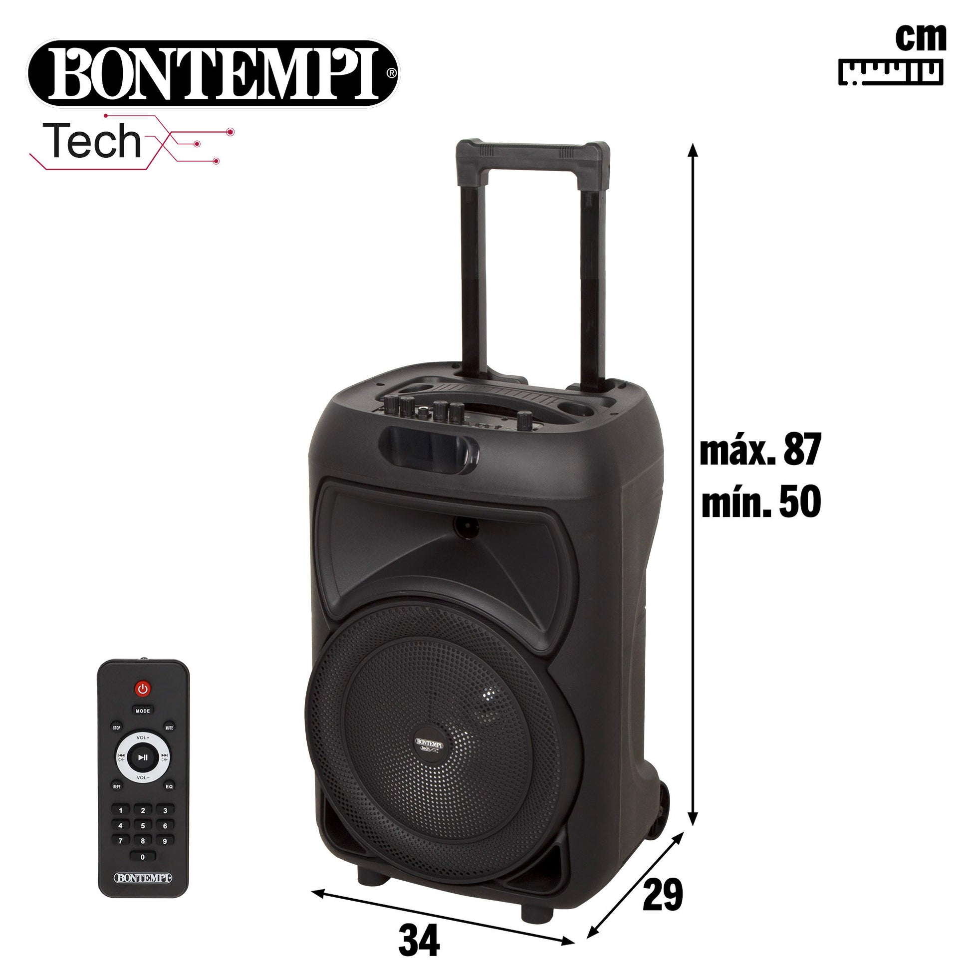 El altavoz maleta Bontempi es una opción completa y versátil para quienes buscan potencia, movilidad y diversión en un solo producto. Su diseño con asa extensible y ruedas permite transportarlo cómodamente. Gracias a su batería recargable y múltiples opciones de conexión, podrás disfrutar de música, karaoke o radio donde quieras. Y con su pantalla integrada, controlar cada función es fácil e intuitivo.