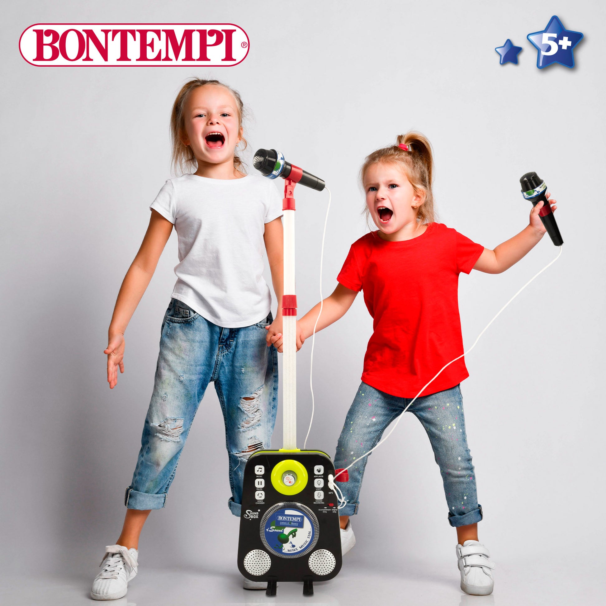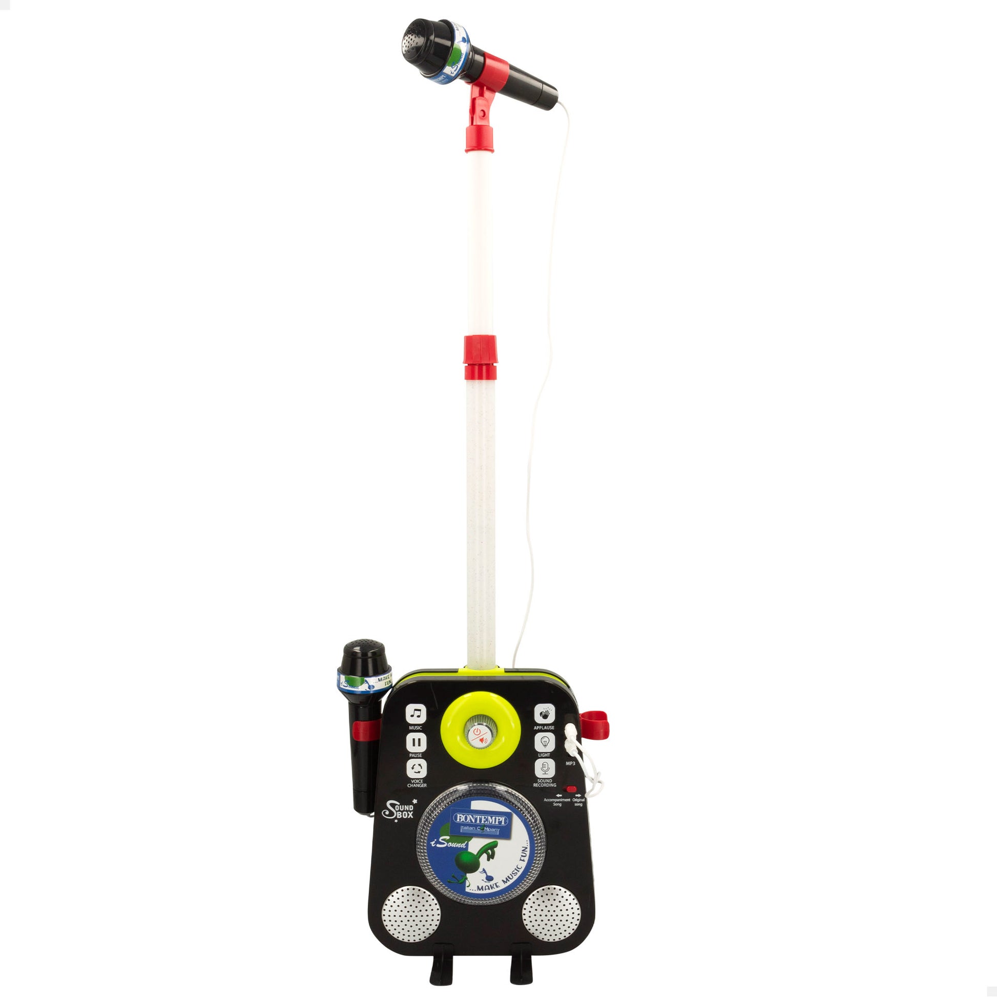 ¡Música, luces y acción! Si te apasiona la música y no hay una canción que se te resista, este altavoz karaoke para niños tiene tu nombre. Colócalo en un sitio donde puedas moverte con facilidad para bailar, cantar e interpretar canciones con toda tu alma y, ¡a disfrutar! ¿Lo mejor? viene con dos micrófonos para que puedas cantar solo o acompañado de amigos y familiares. ¡Cuántos más seáis, más divertido! Uno de los micrófonos tiene mástil luminoso ajustable en altura y su soporte se puede regular con mayor o menor inclinación para que cantes lo más cómodo posible. El otro, va conectado por cable y también cuenta con un soporte para colocarlo cuando no se esté usando.