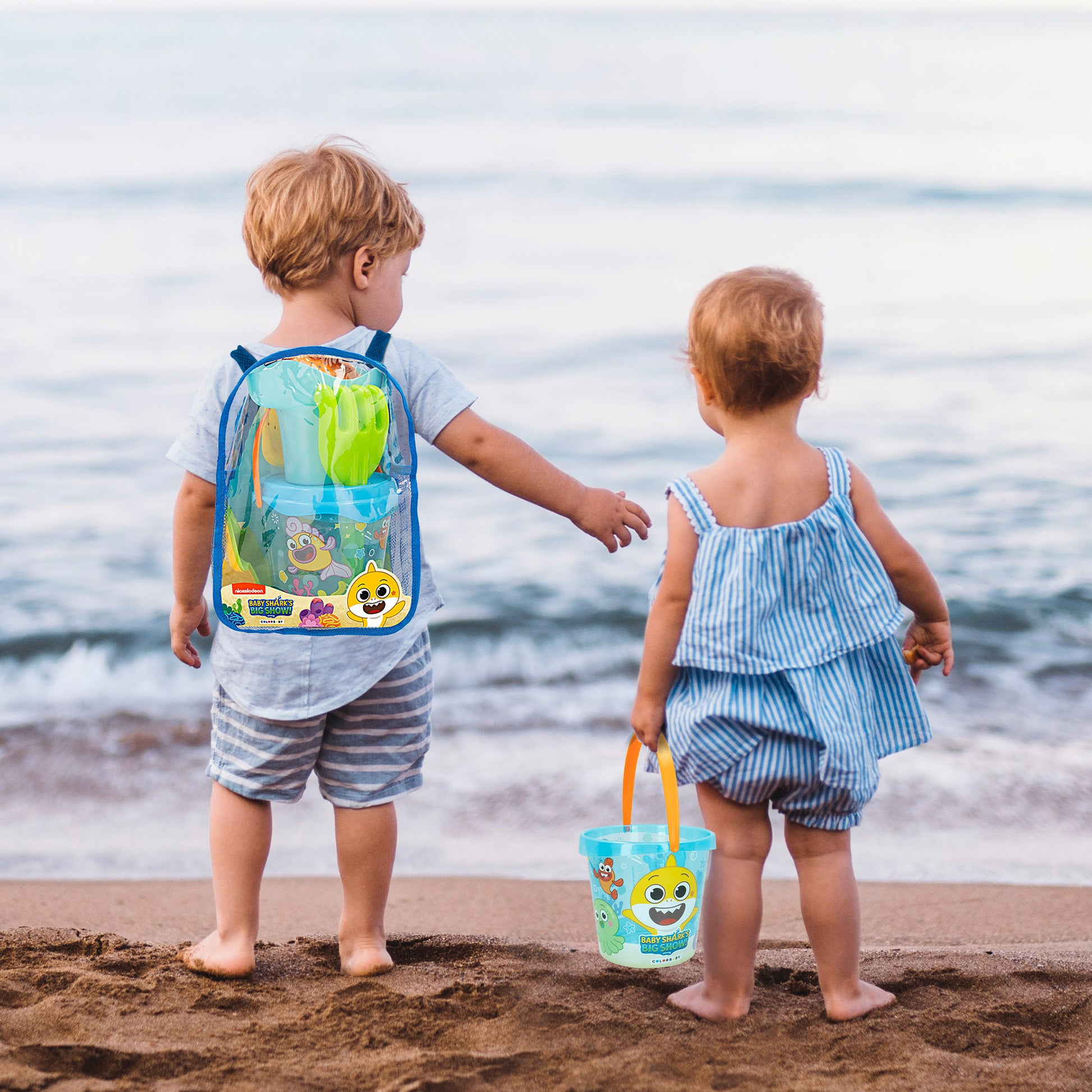 Baby Shark Set cubo playa con accesorios y mochila transporte