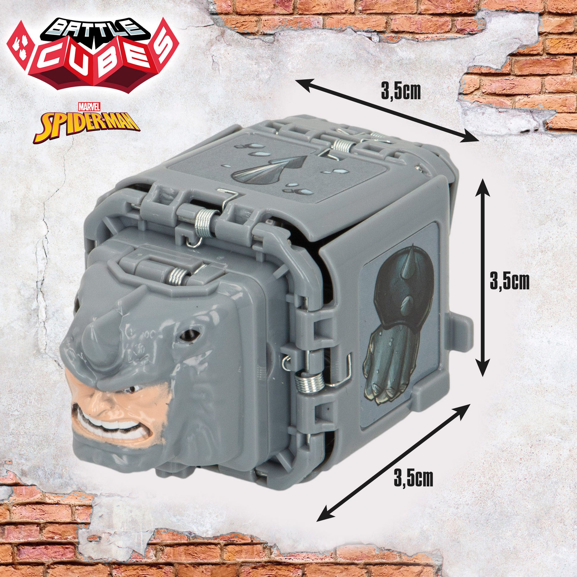 ¡Jugar con los Battle Cubes es muy sencillo y divertido! Lo primero que debes hacer es elegir a uno de los dos personajes del pack de la saga Spider-Man: Miles Morales o Rhino. Después, extraer la cara del personaje y seleccionar cautelosamente tu estrategia de ataque sin que tus contrincantes lo vean. Una vez hayas elegido piedra, papel o tijera, deberás abrir el cubo y cerrarlo al revés, dejando al personaje en su interior. Ahora que ya está todo listo, solo queda ir a batallar. Cada oponente debe encarar su Battle Cube frente al del adversario y lanzar su cubo para descubrir qué cubo atrapa al otro y se convierte en el ganador del combate. ¡Únete a la batalla con los juguetes de Marvel Spiderman!