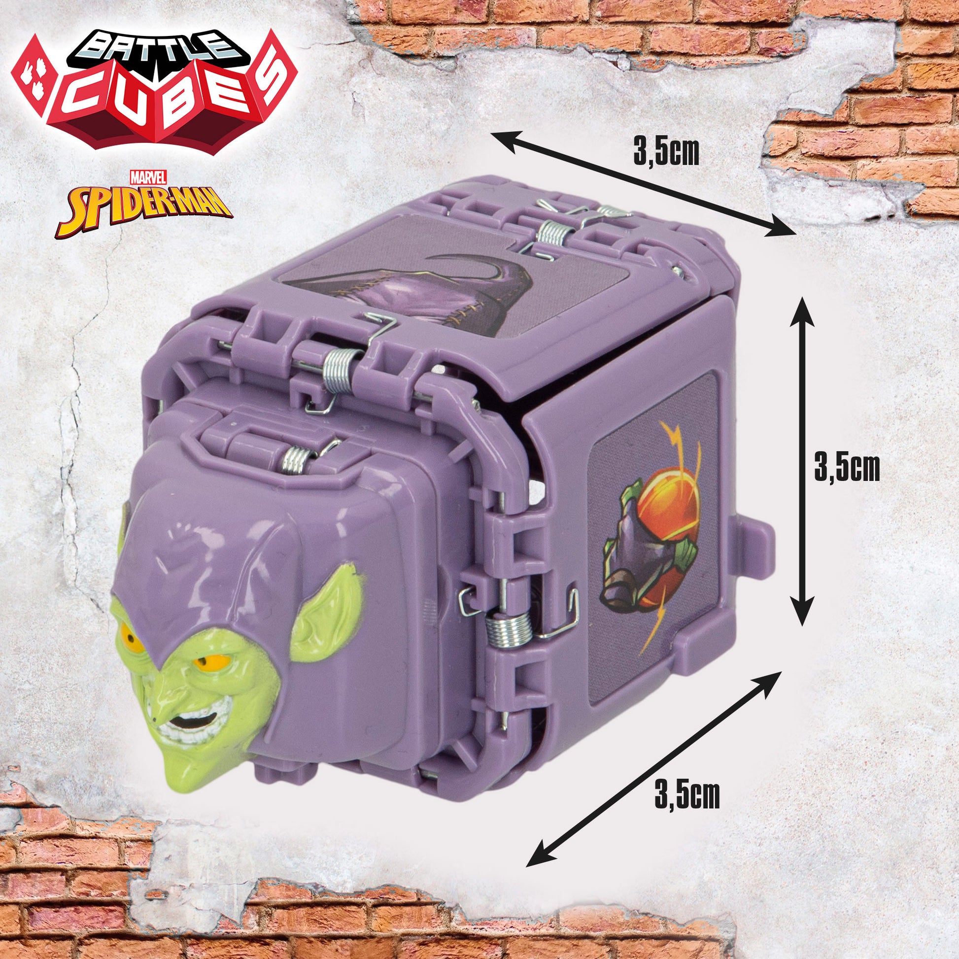 ¡Jugar con los Battle Cubes es muy sencillo y divertido! Lo primero que debes hacer es elegir a uno de los dos personajes del pack de la saga Spider-Man: Spider-Gwen o Duende Verde. Después, extraer la cara del personaje y seleccionar cautelosamente tu estrategia de ataque sin que tus contrincantes lo vean. Una vez hayas elegido piedra, papel o tijera, deberás abrir el cubo y cerrarlo al revés, dejando al personaje en su interior. Ahora que ya está todo listo, solo queda ir a batallar. Cada oponente debe encarar su Battle Cube frente al del adversario y lanzar su cubo para descubrir qué cubo atrapa al otro y ser el ganador del combate. ¡Únete a la batalla con los juguetes de Marvel Spiderman!