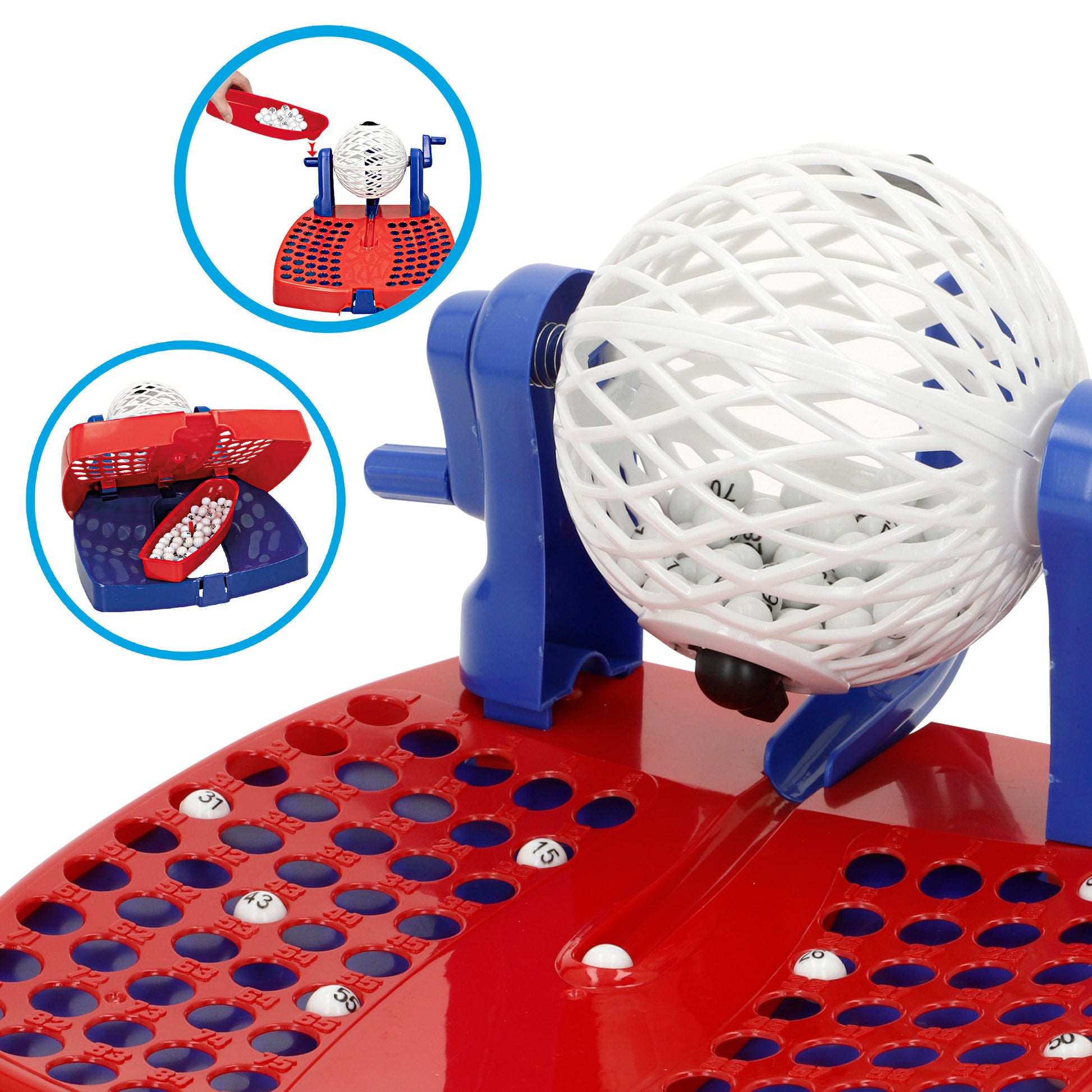 ¡Han cantado bingo! Diviértete en familia con el clásico juego de mesa para toda la familia. Gira el bombo, saca la bola, atento a los números de tu cartón y ¡canta bingo! El juego contiene 235 piezas: 24 cartones, 90 números, 120 fichas y 1 base. Pueden jugar de 2 a más jugadores y está recomendado para mayores de 6 años. Desarrolla el aprendizaje, el lenguaje, la socialización y la motricidad fina.