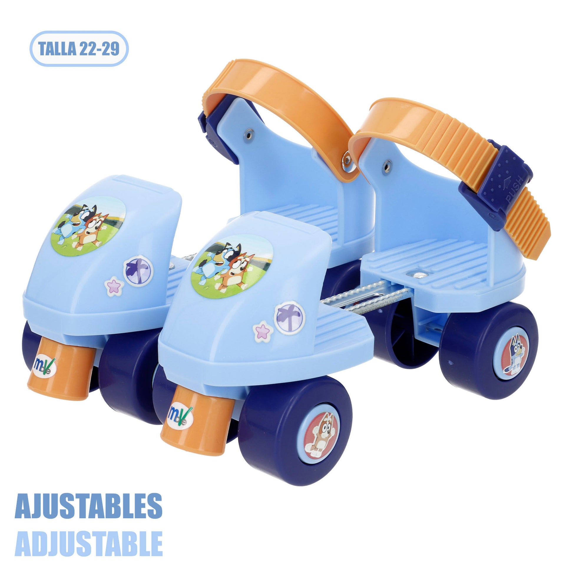 ¡Empieza a rodar con Bluey y vive nuevas aventuras sobre estos coloridos patines de cuatro ruedas! Con un diseño alegre y decorado con los personajes favoritos de la serie Bongo y Bluey, son perfectos para que los peques se inicien en el mundo del patinaje con seguridad y mucha diversión.