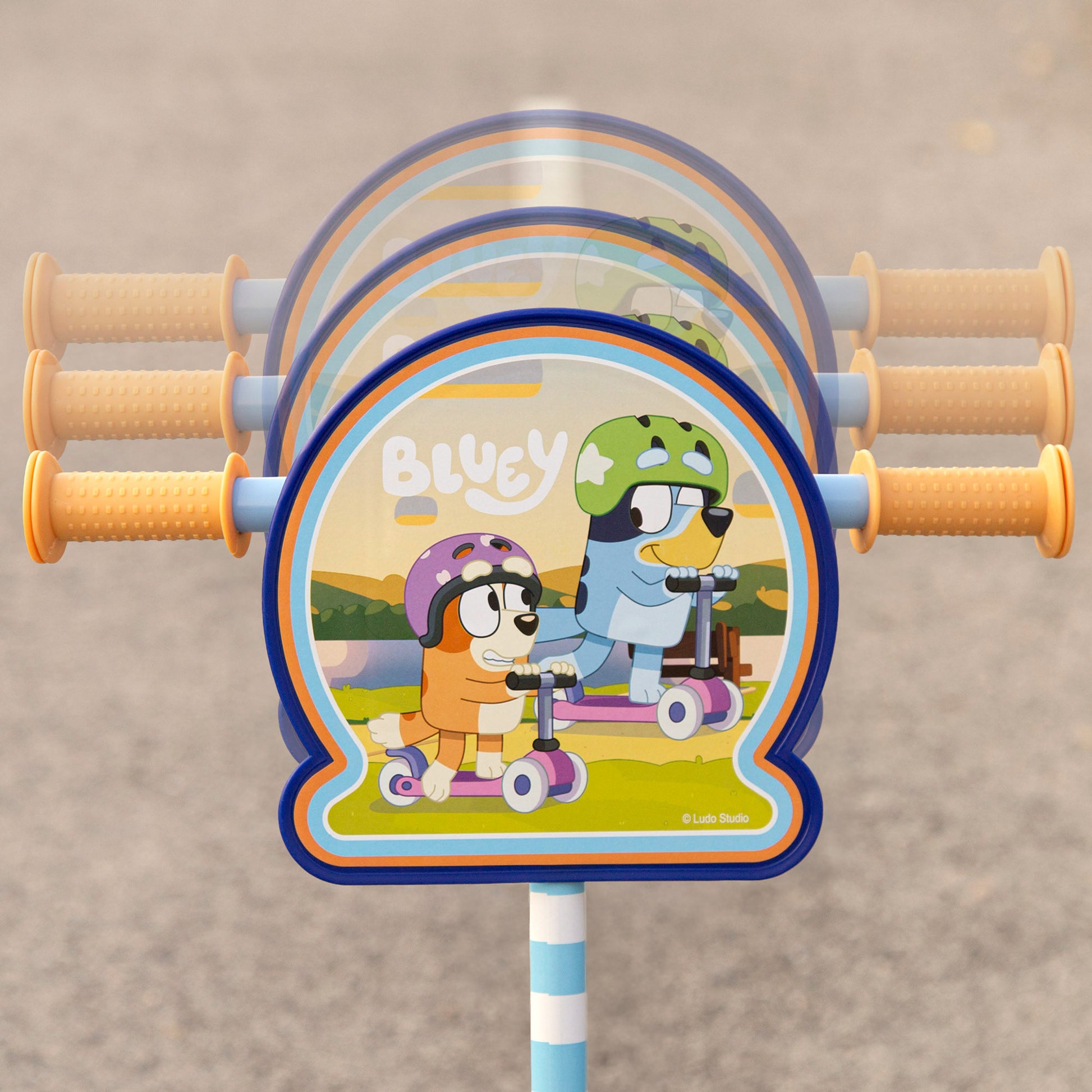 ¡Empieza a rodar con Bluey y recorre tu barrio con colorido patinete de tres ruedas (58x36x65-70 cm)! Su diseño infantil, decorado con los valientes personajes de la serie Bluey y Bingo y su divertida placa frontal (desmontable) harán que los peques se diviertan con sus dibujos favoritos. Ideal para quienes dan sus primeros pasos sobre ruedas, con total seguridad, estabilidad y mucho estilo.