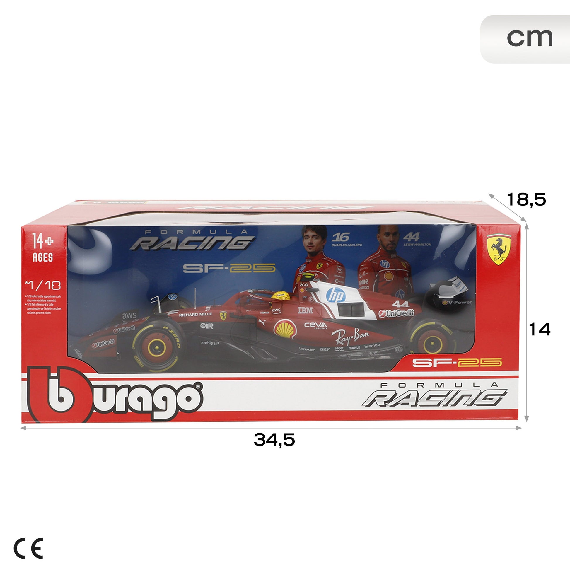 Esta réplica a escala 1:18 reproduce con gran fidelidad el Ferrari SF-25, el monoplaza con el que Lewis Hamilton compitió en el campeonato mundial de Fórmula 1 en la temporada 2025 junto a la Scuderia Ferrari. Su diseño aerodinámico, el emblemático color rojo y los logotipos oficiales de patrocinadores como Shell, Ray-Ban y Pirelli reflejan perfectamente el aspecto del coche real, convirtiéndolo en una pieza imprescindible para cualquier aficionado.