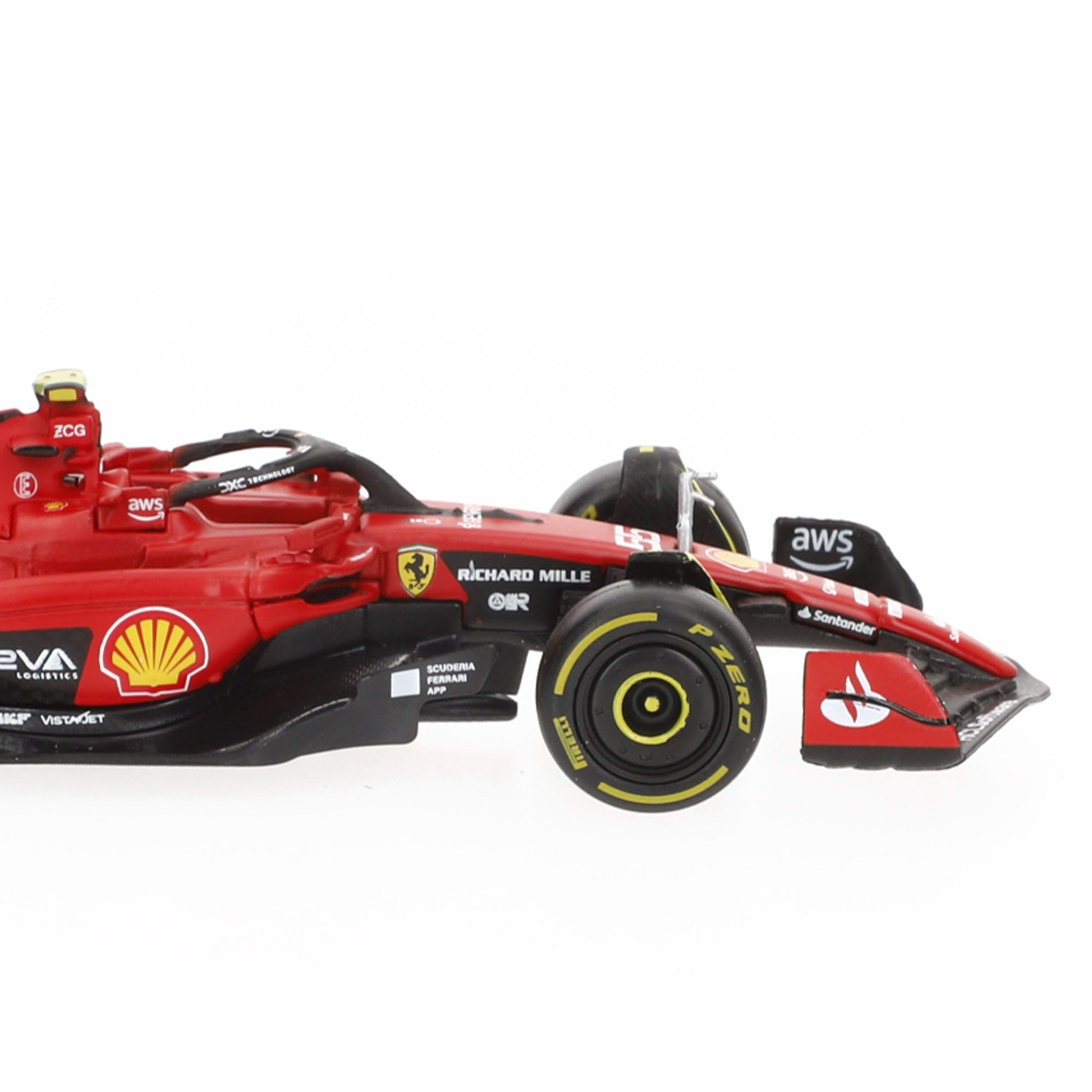 Esta réplica oficial del Ferrari F1 Racing SF-23 viene cuidadosamente detallada para replicar el diseño exacto del modelo original. Incluye detalles como los logos de los patrocinadores, los gráficos oficiales del equipo, y una estructura aerodinámica precisa.