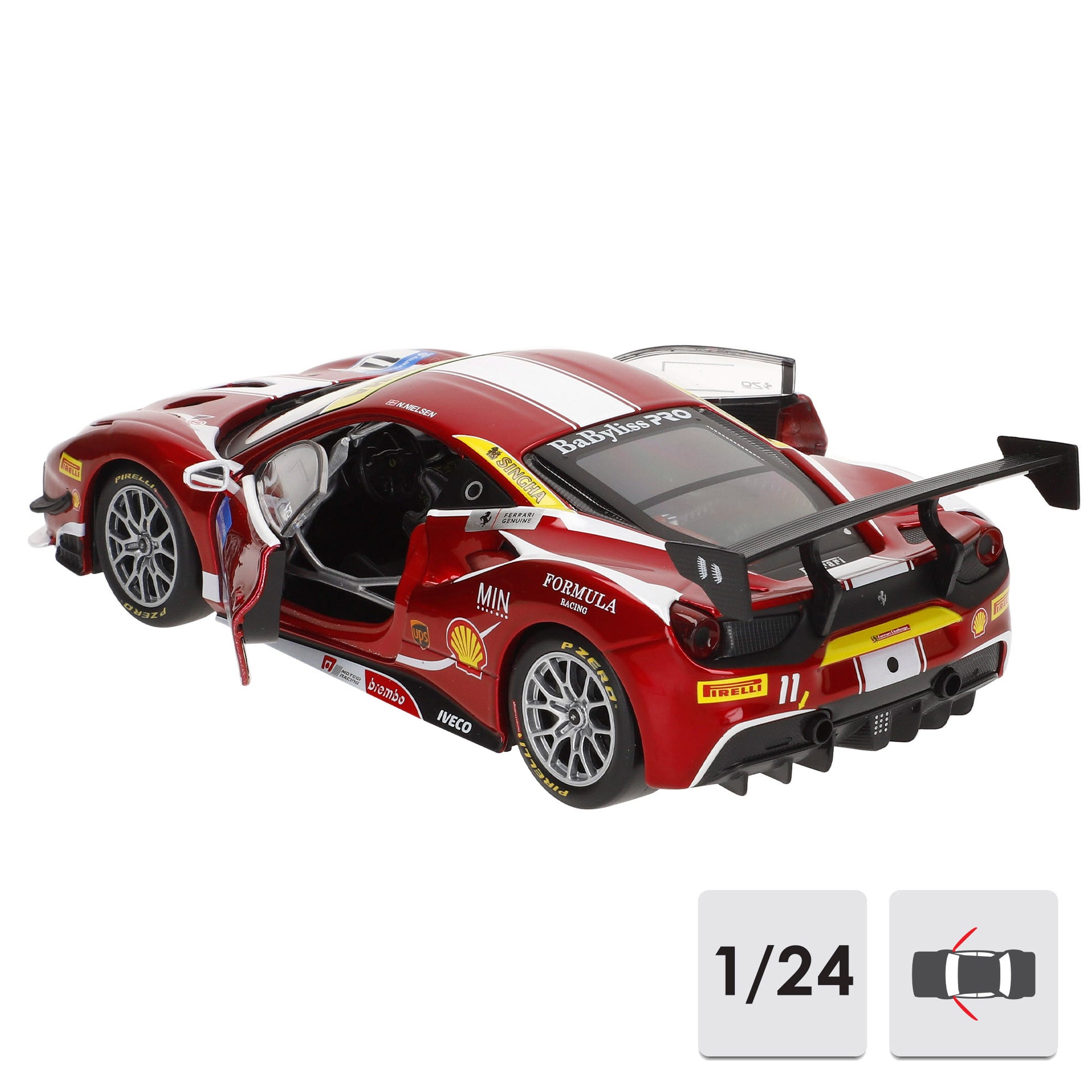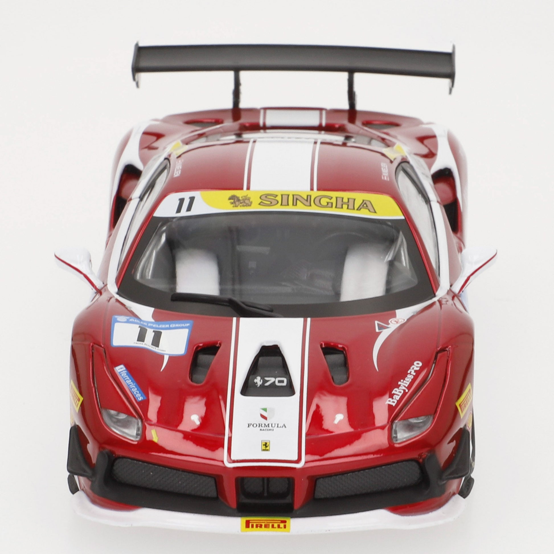 El Ferrari 488 Challenge es la versión más avanzada del 488 Challenge, diseñada para ofrecer un rendimiento superior en circuito. Esta réplica a escala 1:24 de Burago captura a la perfección su diseño aerodinámico, con un nuevo splitter frontal, difusor trasero y un imponente alerón, optimizados para mejorar la estabilidad en curvas. Su acabado en Rosso Corsa con el dorsal #11 y vinilos de competición recrea la esencia de los coches que participan en la Ferrari Challenge, la serie monomarca más prestigiosa de la marca.