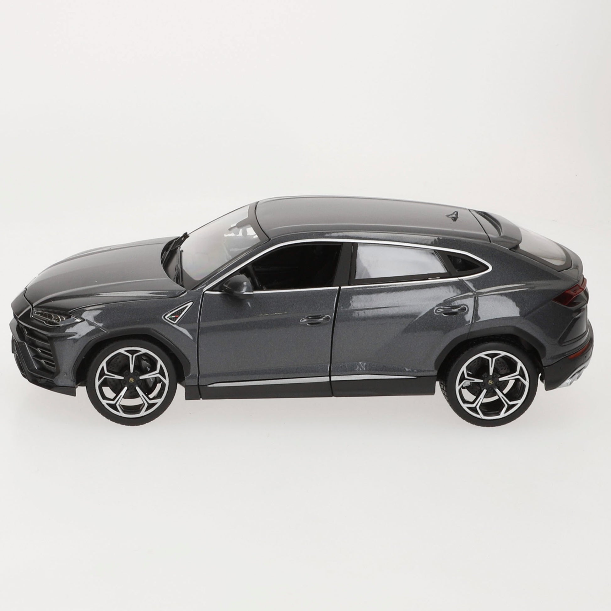 Este coche de metal reproduce con gran fidelidad el Lamborghini Urus, el primer SUV de la marca italiana que combina diseño deportivo, potencia y versatilidad. Su carrocería en color gris metalizado refleja su carácter elegante y agresivo, acompañado de detalles aerodinámicos y una parrilla frontal imponente. Con un motor V8 biturbo de 650 CV en su versión real, el Urus es sinónimo de exclusividad y rendimiento en cualquier terreno.