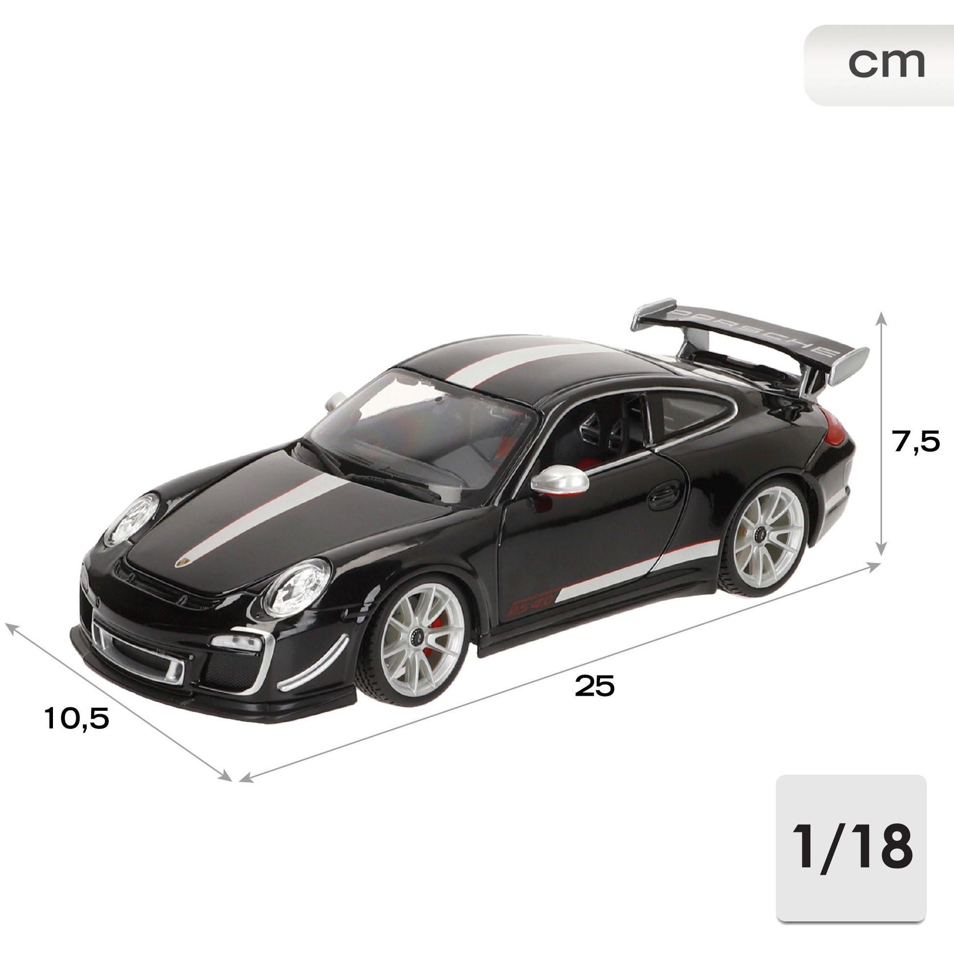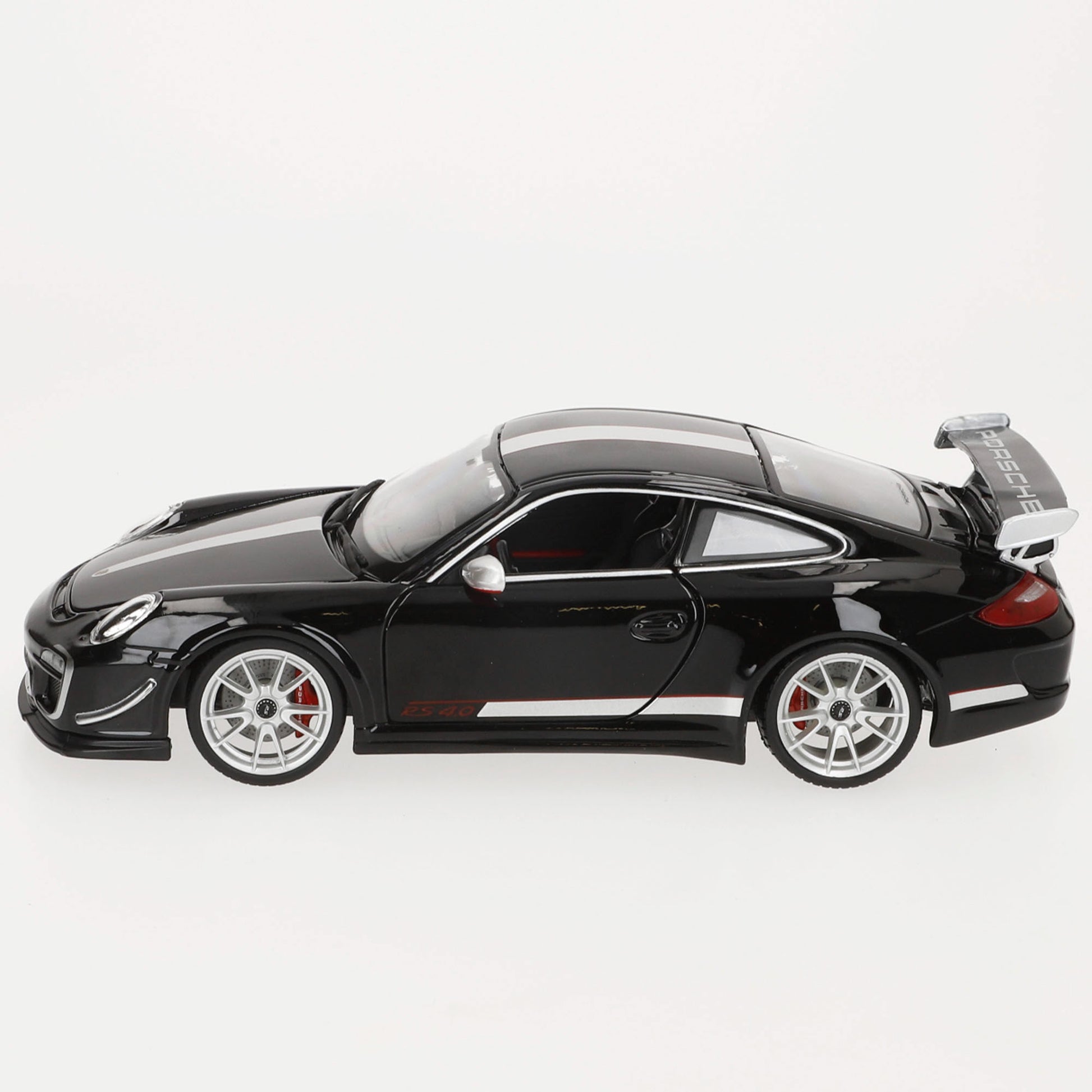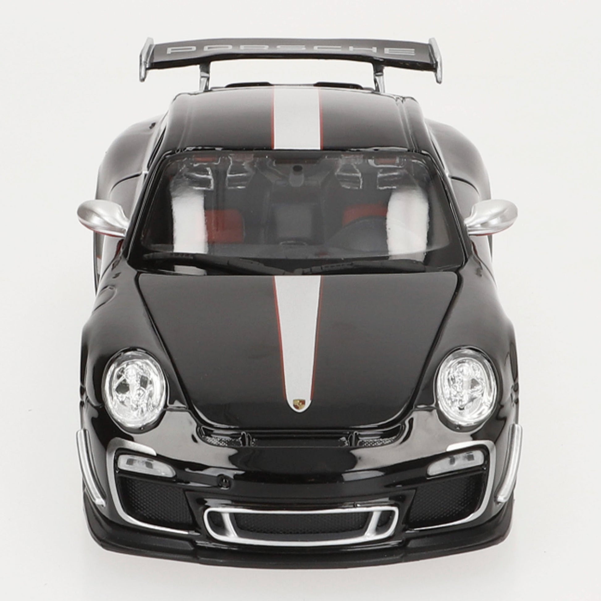 Este modelo es una réplica del emblemático Porsche 997 GT3 RS 4.0, un coche de edición limitada que llevó el rendimiento de la serie GT3 a otro nivel. Equipado con un motor atmosférico de 4.0 litros y 500 CV, fue diseñado para ofrecer una conducción extrema en circuito. La versión de Burago refleja con fidelidad su esencia deportiva, con una carrocería en negro con detalles en gris y rojo, un alerón trasero de gran tamaño y una aerodinámica optimizada para maximizar el rendimiento en pista.