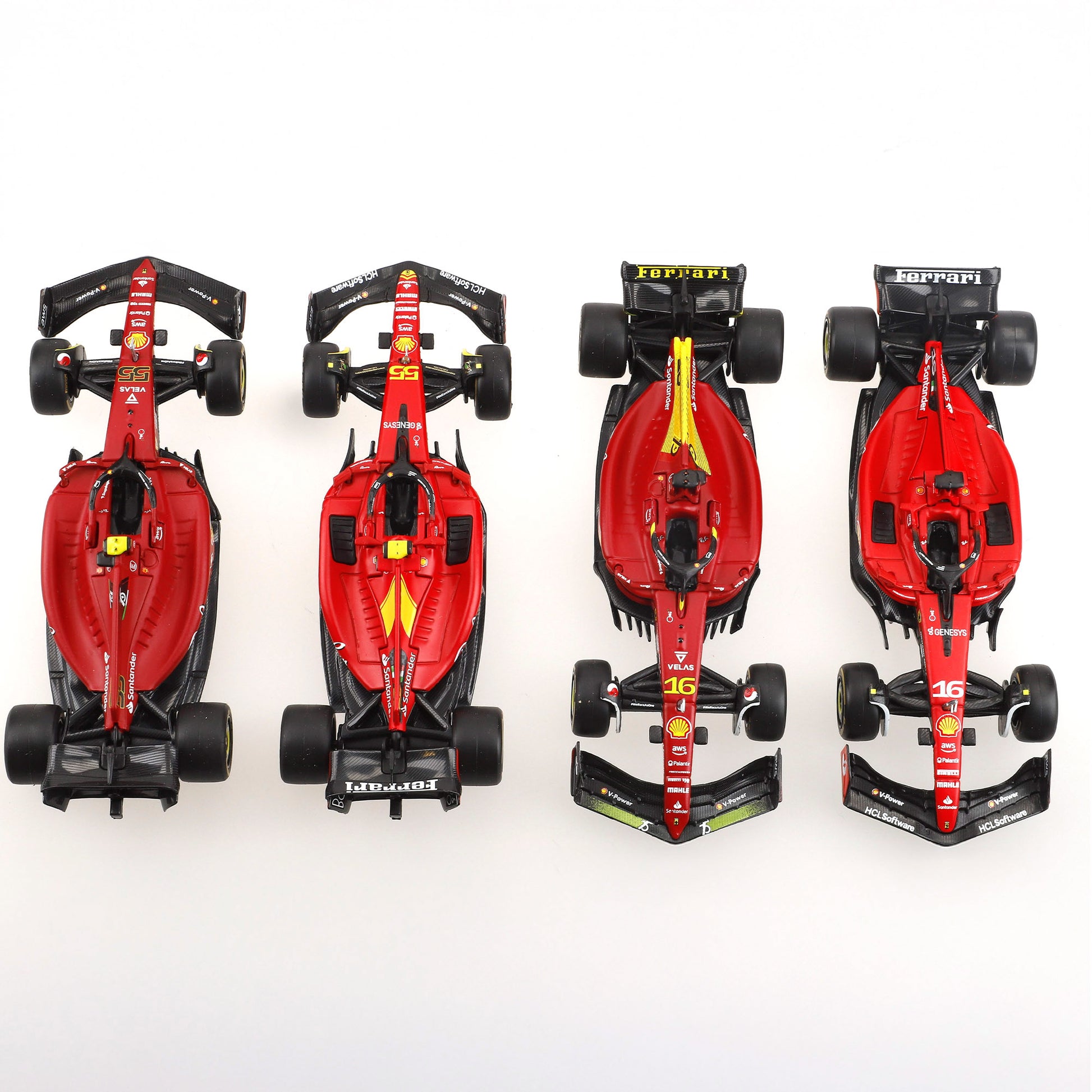 Este espectacular set reúne en una sola colección cuatro réplicas a escala 1:43 de los monoplazas Ferrari F1 pilotados por Charles Leclerc y Carlos Sainz en las temporadas 2022 y 2023. Un homenaje al rendimiento del equipo más icónico de la Fórmula 1, con modelos que reflejan fielmente la evolución del F1-75 y el SF-23, incluyendo sus líneas aerodinámicas, dorsales y patrocinadores. Gracias a su excelente nivel de detalle, este pack no solo es ideal para exposición, sino también para que los más pequeños revivan sus propias carreras imaginarias en miniatura.
