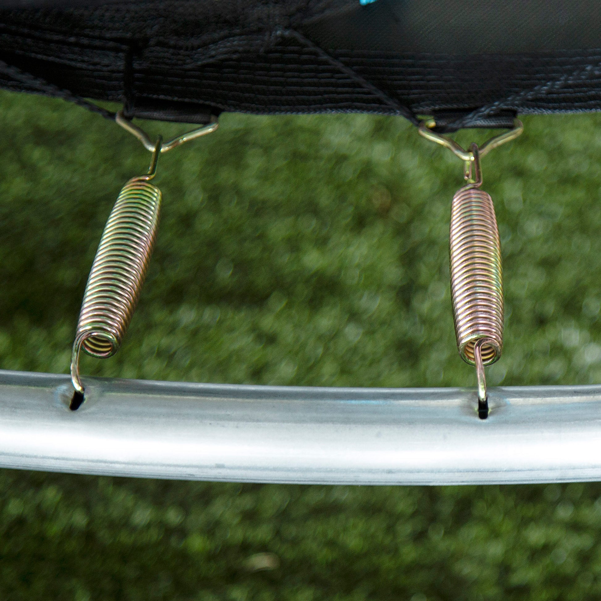 La cama elástica cuenta con 3 patas resistentes en forma de "U" para una mayor estabilidad. La zona de salto se compone por muelles galvanizados para ofrecer una mayor amortiguación durante los saltos. Estos muelles están cubiertos por la plataforma exterior acolchada de gomaespuma que evita hacerse daño y facilita la entrada y salida a la cama elástica. También incluye postes recubiertos de gomaespuma que soportan la red para ofrecer una mayor resistencia a la estructura. La red de seguridad cuenta con 1 entrada con cierre de cremallera y con 2 cierres de seguridad con hebillas. ¡Podrás disfrutar de ella durante mucho tiempo!