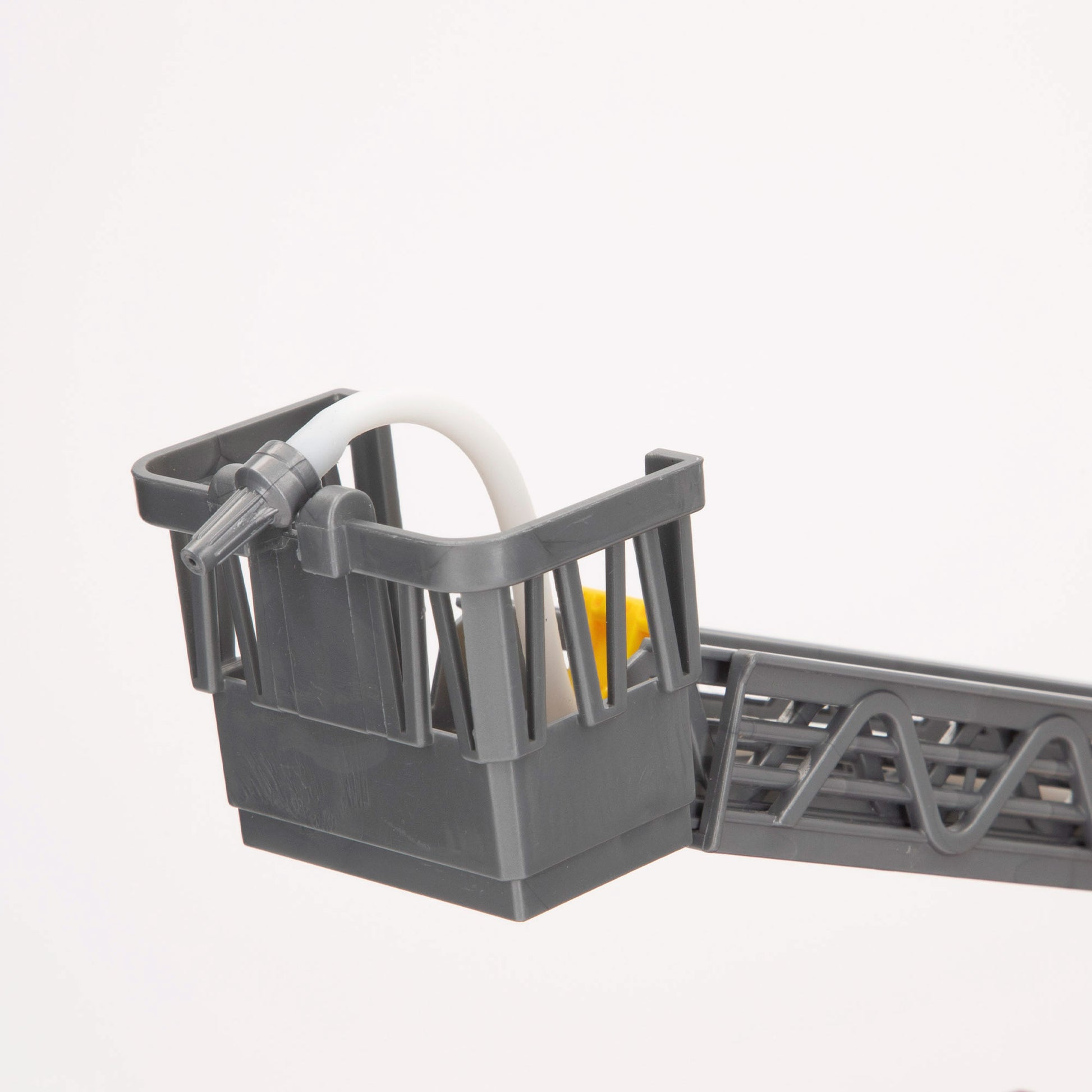 El camión de bomberos incluye una grúa que se eleva, una manguera desplegable equipada con depósito de agua que, al presionar un botón, dispara agua de verdad, aportando un toque de realismo extra al juego.También tiene botones que activan tanto las luces como los sonidos reales de sirena, arranque y maniobra y otros elementos interactivos para más realismo durante el juego. Además, cuenta con un sistema de fricción para que puedas mover el camión fácilmente, sin necesidad de pilas para el movimiento. ¡Listo para cualquier misión!