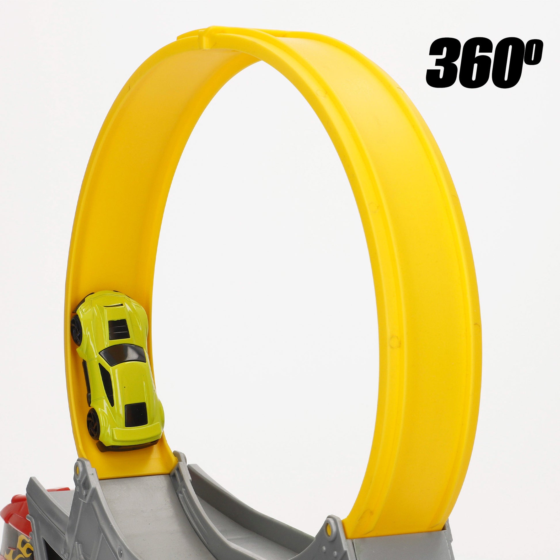 El set incorpora un camión lanzador transformable, un looping amarillo, una rampa de salto ajustable y un coche metálico die-cast para comenzar a jugar desde el primer momento. Además, el camión tiene capacidad para almacenar hasta 14 coches, por lo que también funciona como maletín organizador.