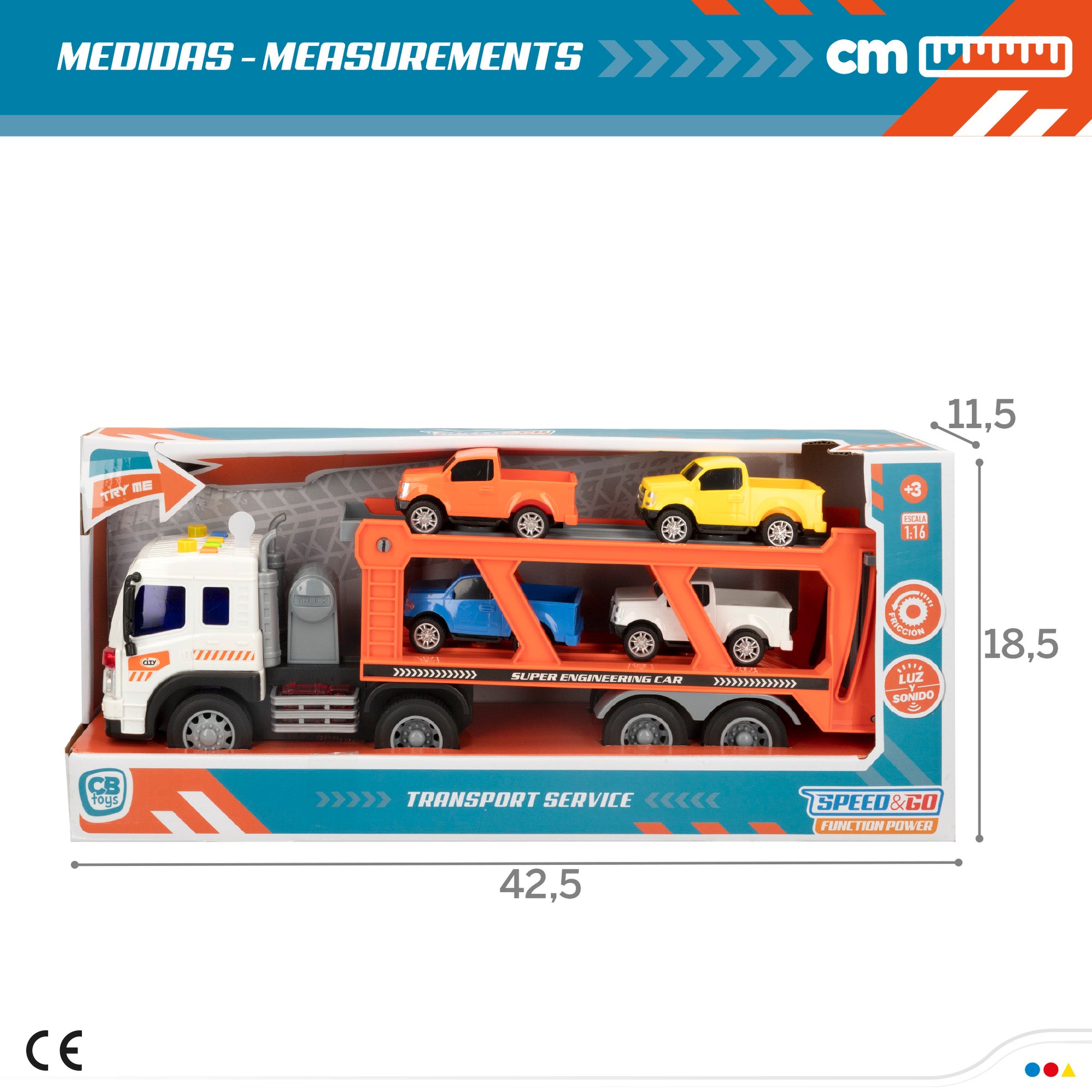 Camión portacoches fricción con luz y sonido Speed & Go