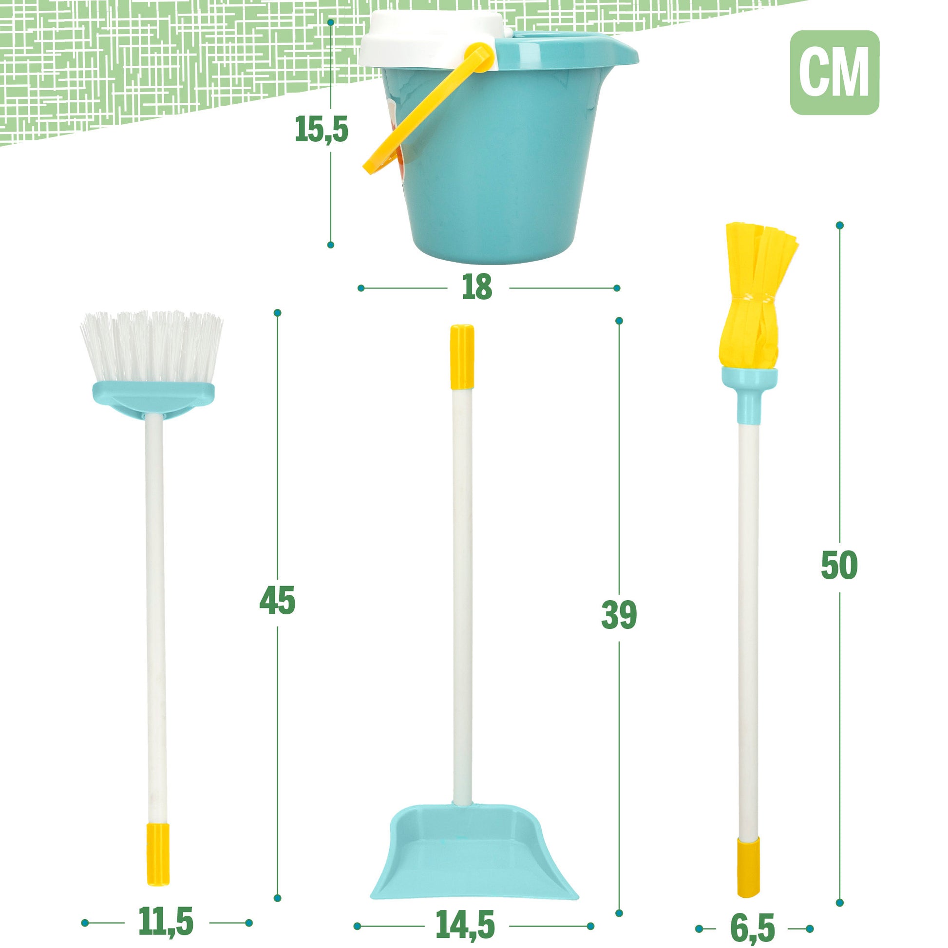 ¡Hogar, dulce hogar! ¡Mantén limpio el suelo de tu casita gracias a este set limpieza My Sweet Home! Tiene todos los utensilios necesarios para dejarlo brillante y como nuevo. Además, es muy fácil de transportar gracias al asa de mano y a las ruedecitas incorporadas. ¡Barre y friega hasta que quede todo bien limpio y reluciente! Es el juguete perfecto para involucrar a los peques de la casa en las tareas domésticas mientras se divierten y dejan volar su imaginación.