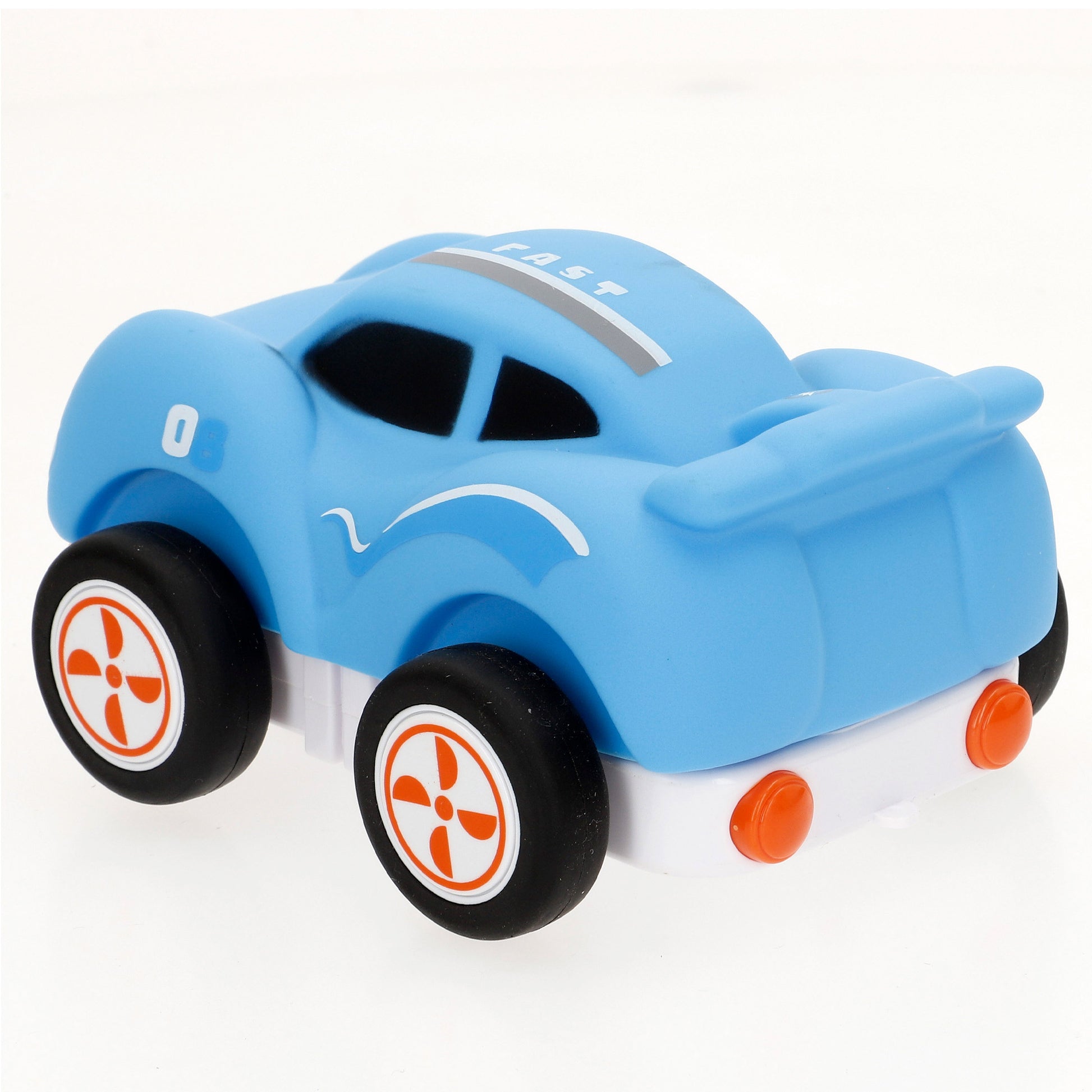 ¡Las carreras más divertidas llegan a casa! Este simpático cochecito azul radiocontrol está listo para rodar con su mejor sonrisa. Solo tienes que manejarlo con el mando y disfrutar viendo cómo avanza y retrocede con facilidad. ¡Con sus luces y sonidos, cada trayecto será una auténtica aventura sobre ruedas!