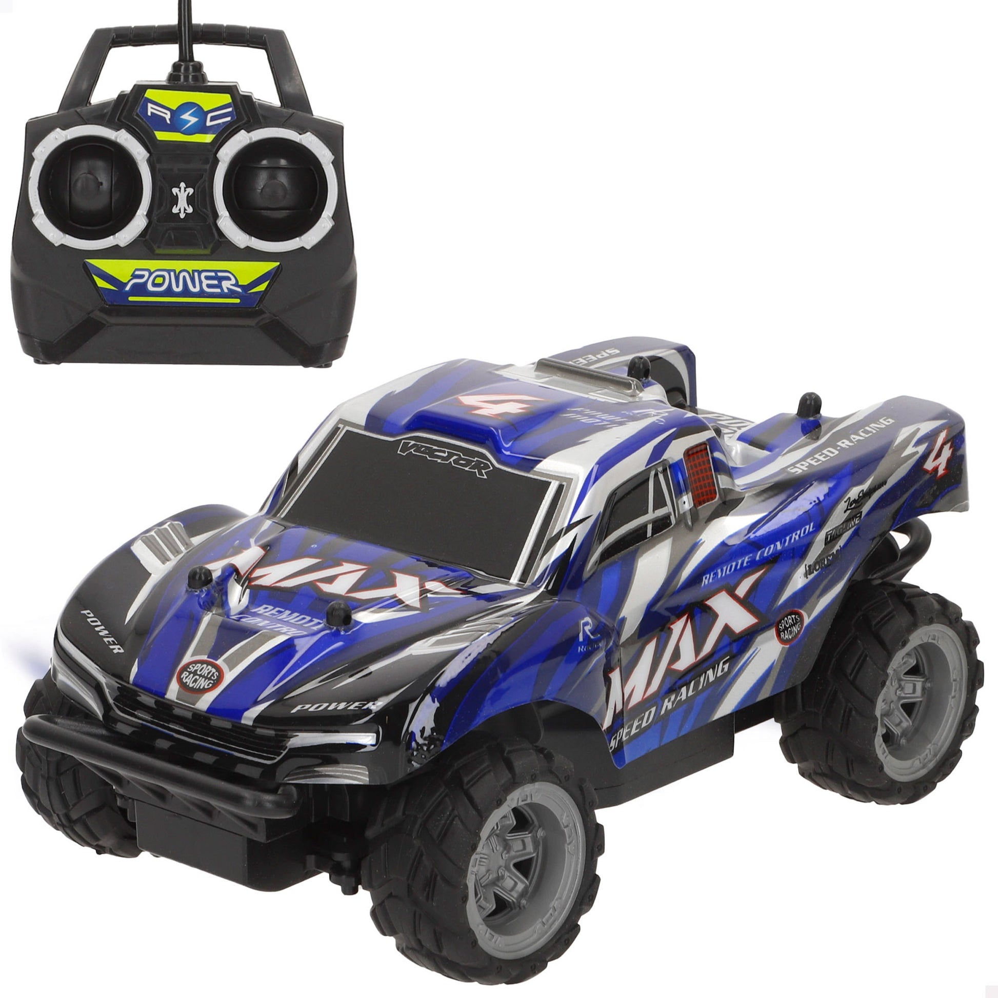 El Monster Truck es un coche teledirigido todoterreno inspirado en los rallies del desierto, diseñado para ofrecer aventuras llenas de emoción sobre cualquier superficie. Su carrocería ligera de alto impacto y sus grandes ruedas de goma con tacos aseguran una tracción excepcional en terrenos desafiantes. Las ruedas delanteras giratorias proporcionan una maniobrabilidad ágil, mientras que las ruedas traseras fijas garantizan control y estabilidad. Con su estilo robusto y su capacidad para sortear obstáculos, el Monster Truck está listo para cualquier reto que encuentres en el camino.