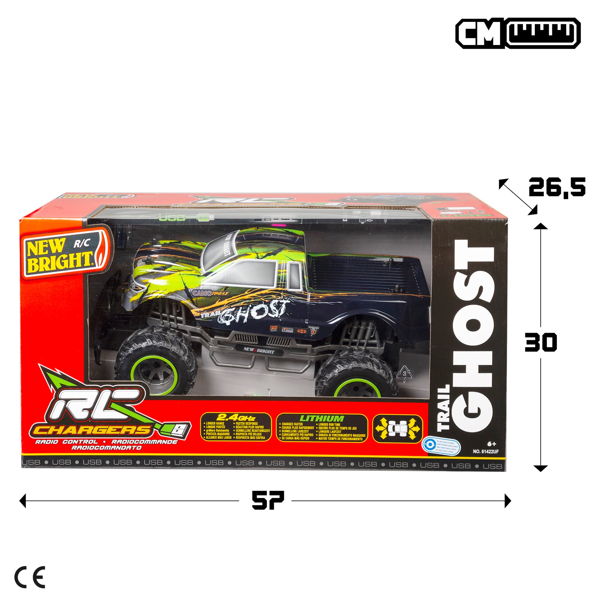 El coche radiocontrol Camo Jungle New Bright tiene unas grandes dimensiones y cuenta con una carrocería ligera diseñada en camuflaje verde y negro. Funciona en la frecuencia 2,4 GHz, potente y de largo alcance, permitiendo dirigir tu vehículo a una distancia de hasta 30 metros e incluso jugar con hasta 5 amigos a la vez sin interferencias. Incluye 2 pilas AA para el mando y batería recargable de 9,6 V con cable USB para el coche. Juguete eléctrico recomendado para niños a partir de 6 años. Arranca tu 4x4 y, ¡que tiemble la carretera!