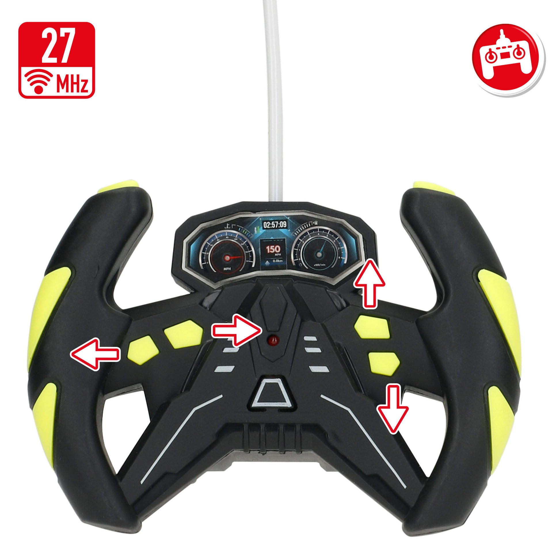 ¡Prepárate para sentir la velocidad en tus manos! Este coche teledirigido de carreras Speed & Go te llevará directo a la pista con su diseño aerodinámico y sus detalles a escala 1:20. Puedes controlarlo en todas direcciones usando el mando a distancia para que derrapes, tomes curvas y alcances la meta como un verdadero campeón. Además, ¡cuenta con un semáforo incluido! Con su luz verde, amarilla y roja, puedes organizar tus propias carreras y competir contra tus amigos para ver quién se lleva el trofeo de campeón.