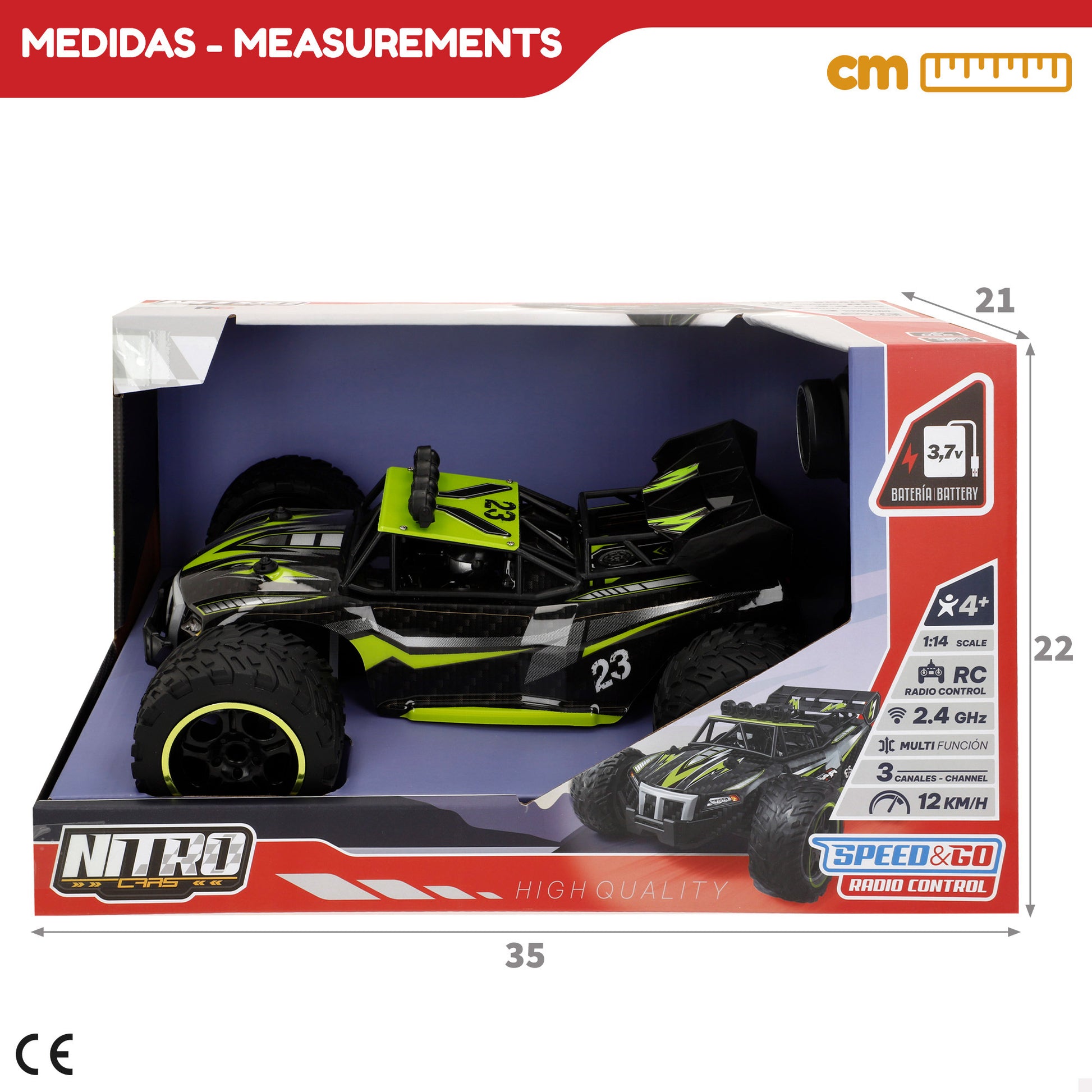 ¡Prepárate para vivir carreras llenas de adrenalina con este impresionante coche todoterreno Speed & Go a escala 1:14! Su diseño deportivo, sus grandes ruedas y su estructura resistente están pensados para ofrecer una conducción rápida y estable incluso en terrenos irregulares. Controla cada movimiento desde el mando a distancia, que ofrece una respuesta rápida y alucinantes aceleraciones.
