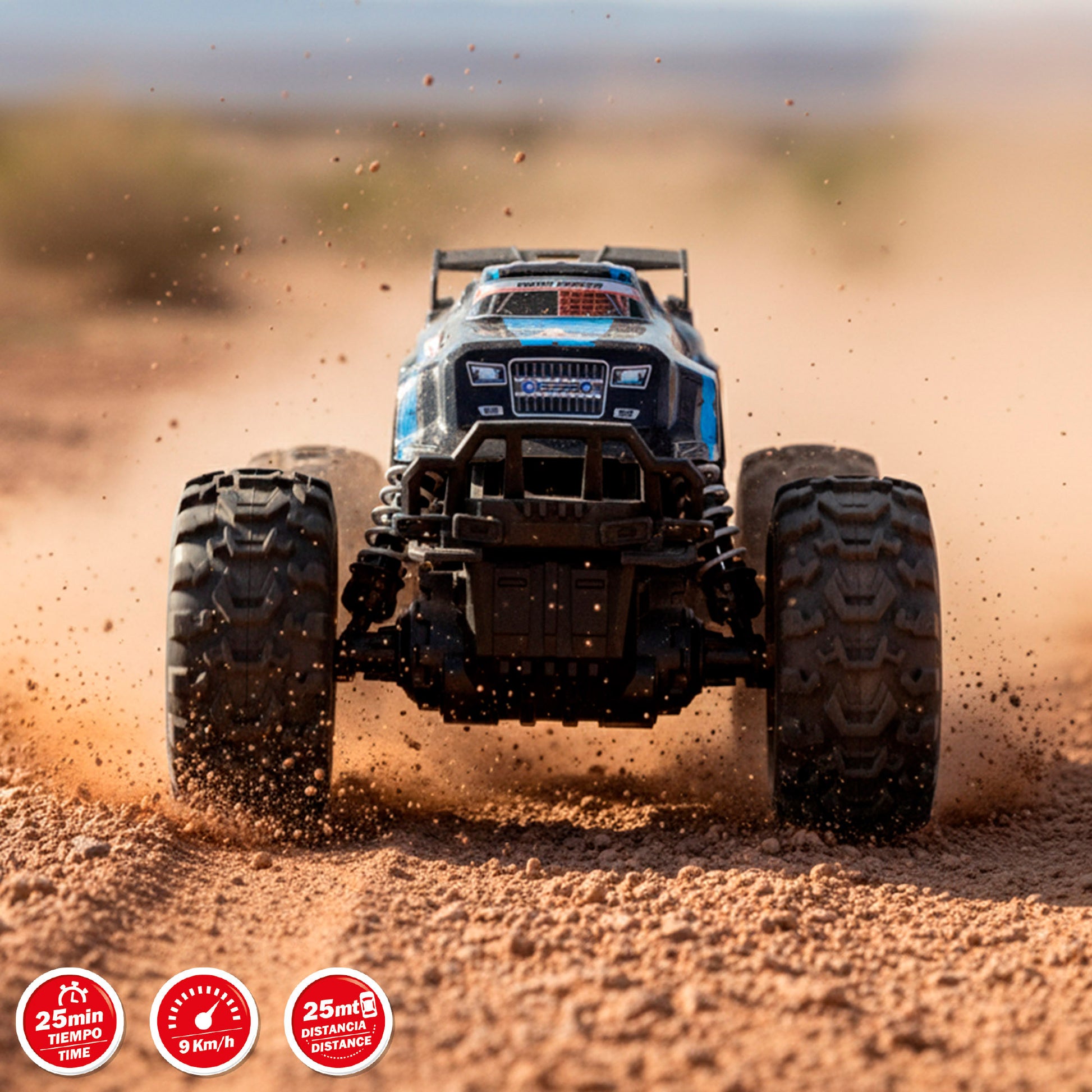 ¡Prepárate para vivir carreras emocionantes y aventuras sin fin con este espectacular coche todoterreno radiocontrol Speed & Go a escala 1:16! Su diseño robusto, sus enormes ruedas y su potente tracción ofrecen una experiencia de conducción única y visualmente espectacular. Gracias a sus neumáticos de goma de alta adherencia, este coche puede desplazarse con estabilidad y precisión incluso en terrenos irregulares, convirtiendo cada juego en una auténtica aventura sobre ruedas.