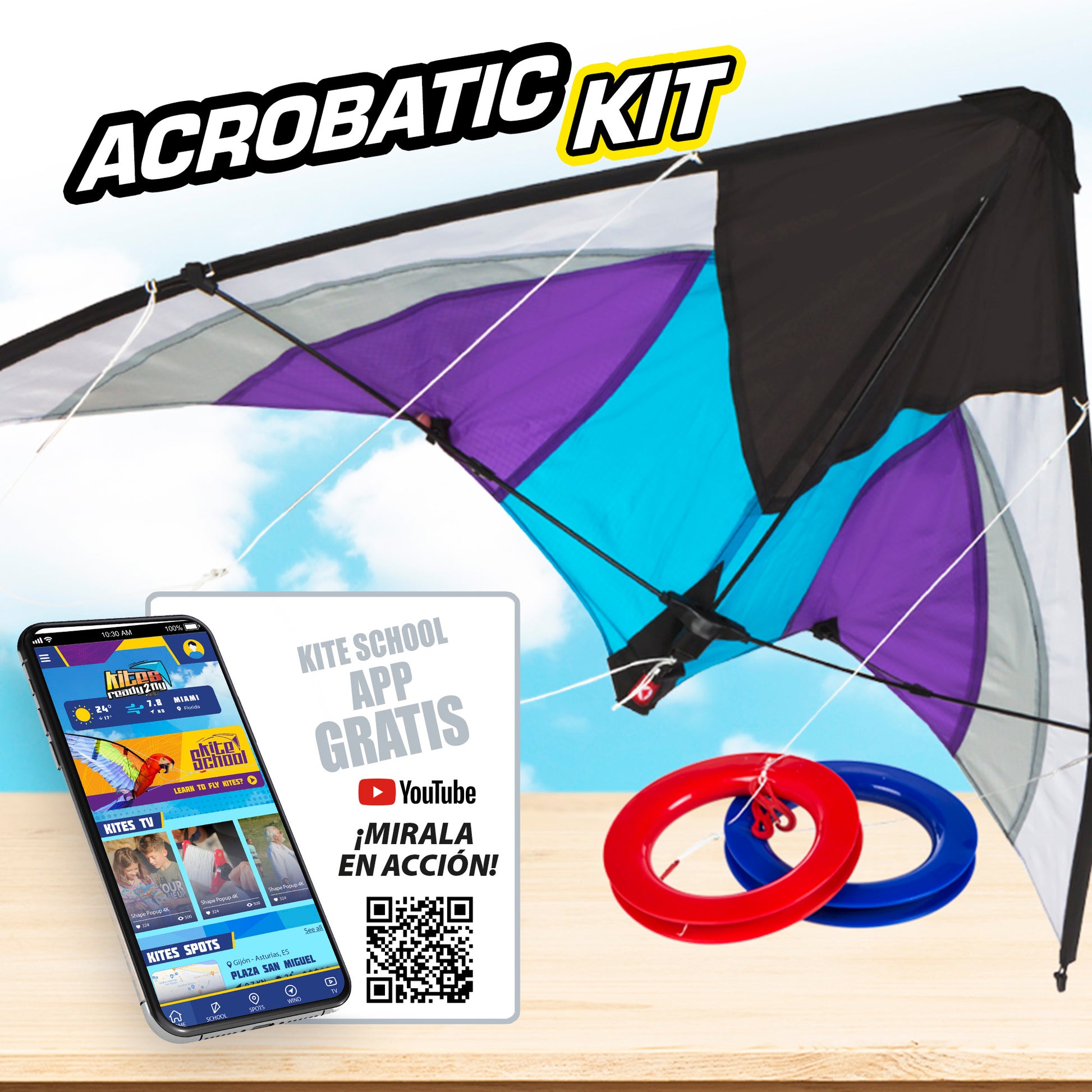 ¡Controla las corrientes de aire y maneja tu cometa por el cielo! Esta cometa acrobática tiene un diseño Pop Up, mide 125 cm de ancho y 72 de alto, su forma aerodinámica consigue una alta velocidad si se cuentan con las condiciones meteorológicas adecuadas. Se controla a través de las 2 asas redondas. Fabricada en nailon y fiberglass. Incluye estuche de plástico para guardarla. +8 años.