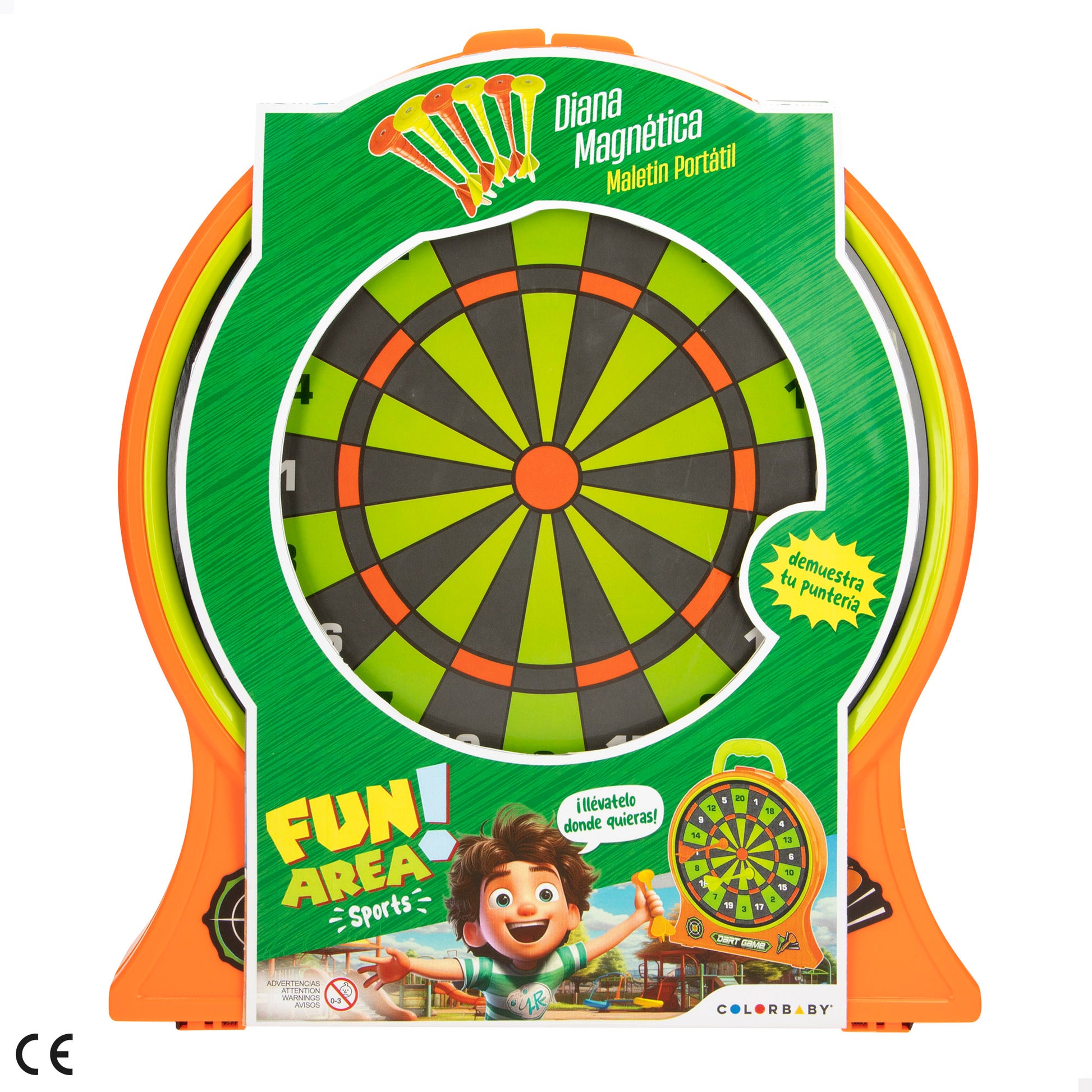 ¡Reúne a tus amigos y disfruta de una tarde llena de diversión con la fantástica diana magnética Fun Area! ¡Concéntrate, mantén la calma, apunta, lanza y suma la mayor puntuación posible! Cada jugador tendrá tres lanzamientos para intentar acercarse al centro de la diana. Ganará el jugador que haya conseguido más puntos. ¡Que empiece el juego!