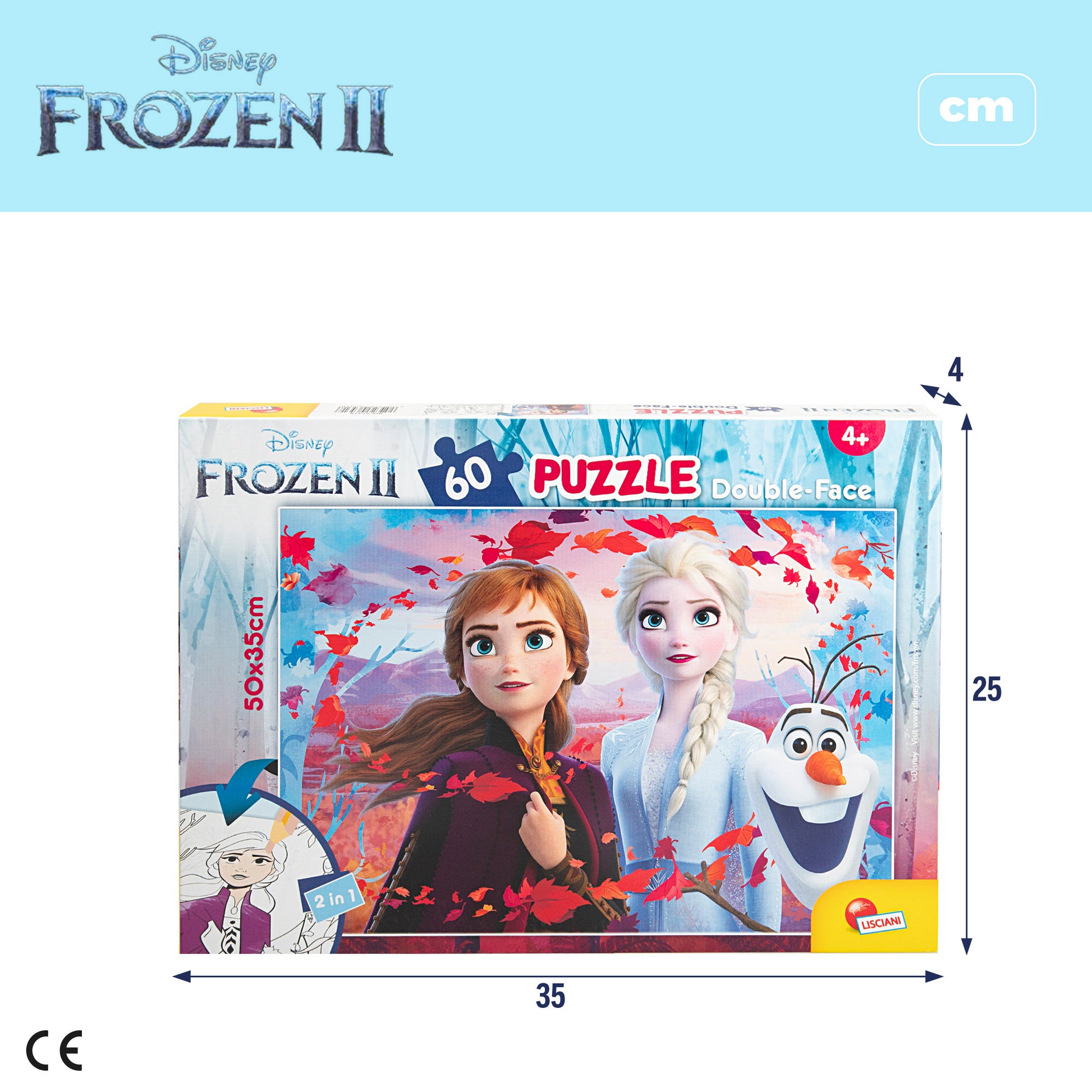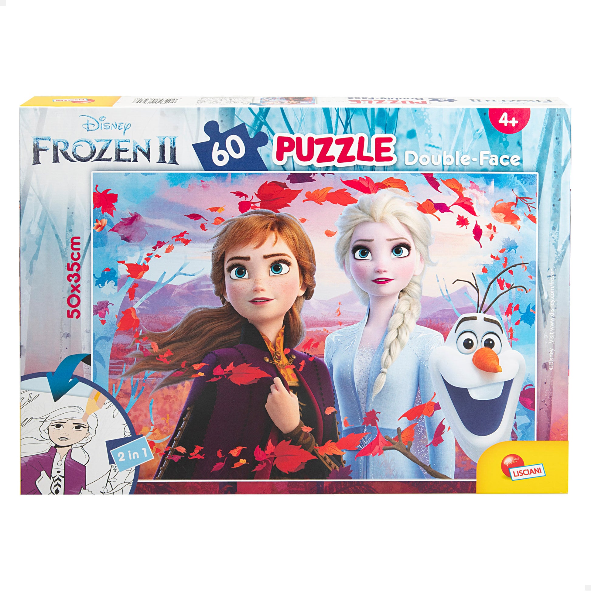 El puzzle Frozen cuenta con 60 piezas con doble cara (una ya coloreada y otra en blanco y negro para colorear libremente).