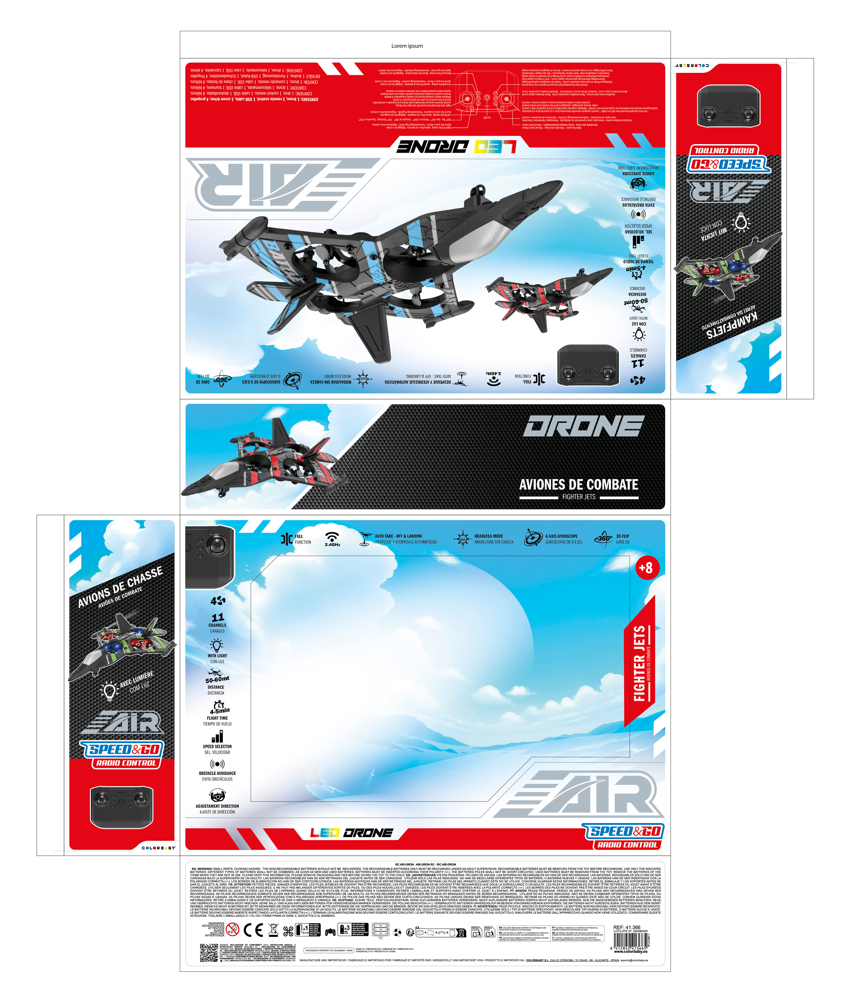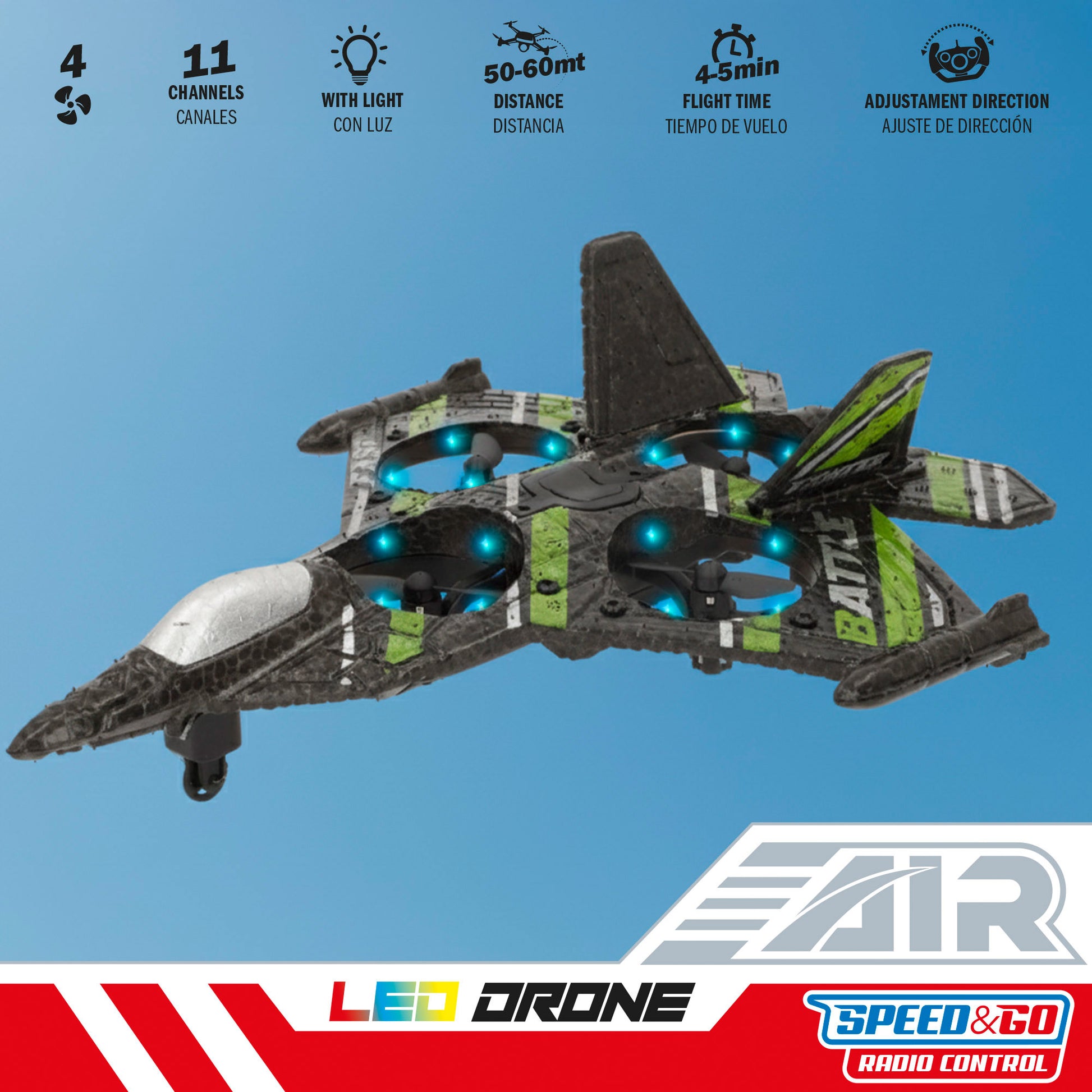 ¡Despega hacia misiones aéreas llenas de acción con el drone de combate Speed & Go! Este dron con diseño futurista en tonos negro y azul combina estilo y tecnología para ofrecer un vuelo estable, ágil y emocionante. Incorpora 4 hélices protegidas, luces LED en la parte inferior. Su estética de avión de combate lo convierte en el compañero perfecto para imaginar misiones y retos en el cielo. ¡Prepárate para pilotarlo como un auténtico experto!