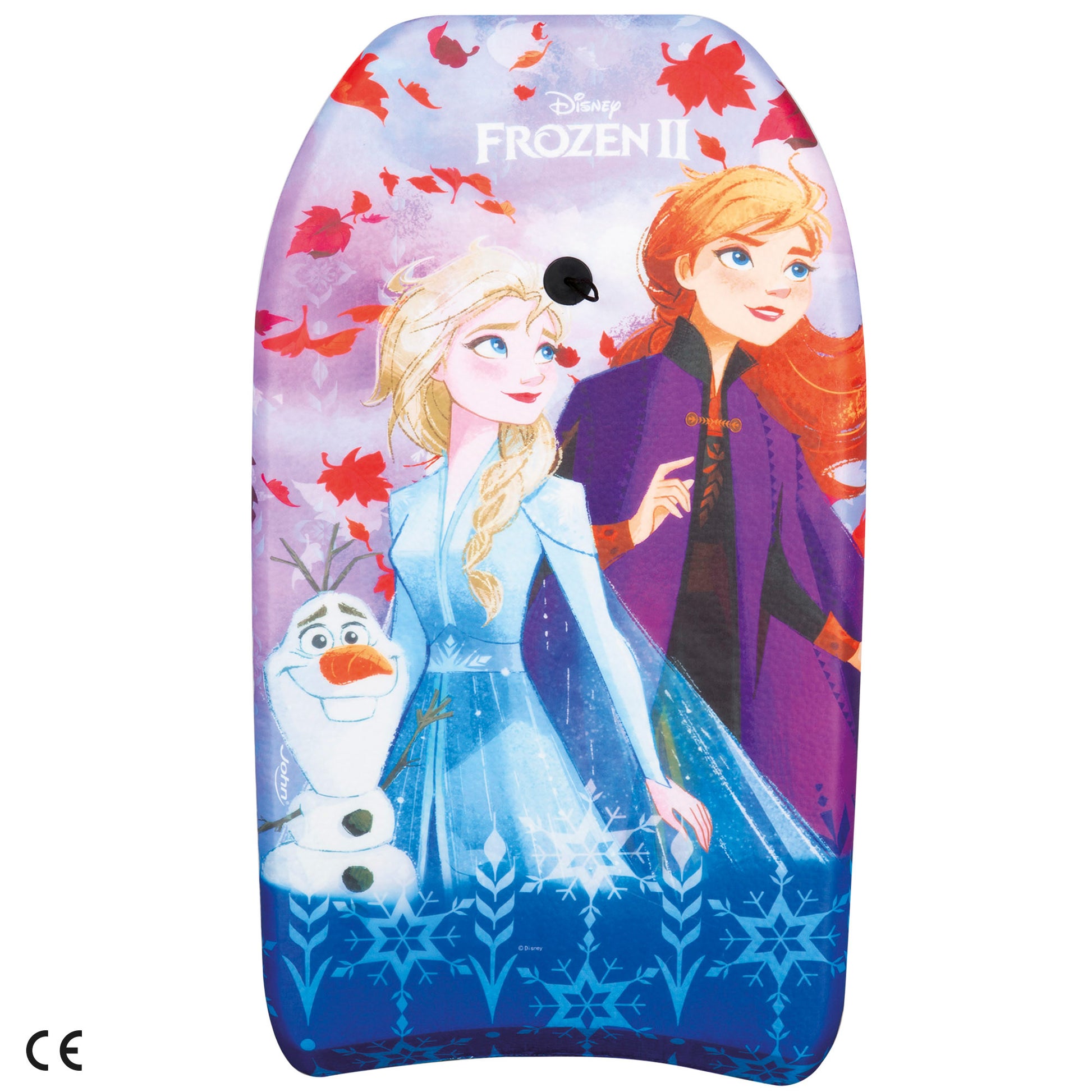 Incluye una tabla bodyboard infantil fabricada en espuma EVA, un material ligero, resistente lo que la hace soportar los golpes del agua fácilmente y fácil de transportar. El diseño está decorado con ilustraciones originales de Disney, protagonizadas por Elsa, Anna y Olaf.