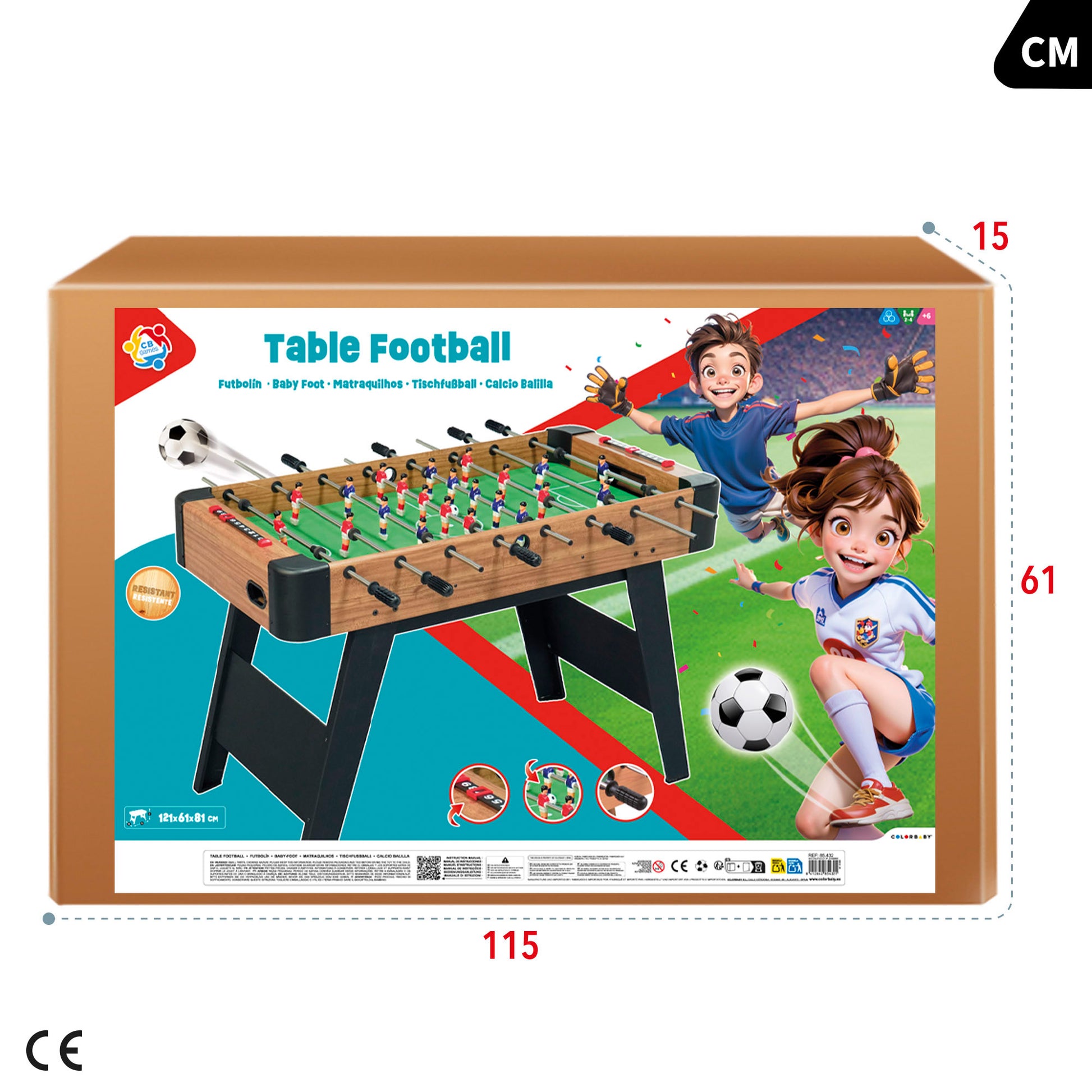 Fabricado con madera de haya de alta calidad y metal resistente, este futbolín mide 121x61x81 cm y es adecuado para 2 a 4 jugadores. Recomendado a partir de 6 años, es fácil de montar y proporciona horas de entretenimiento en grupo. Este futbolín es una opción perfecta para quienes buscan calidad y diversión en un solo producto.