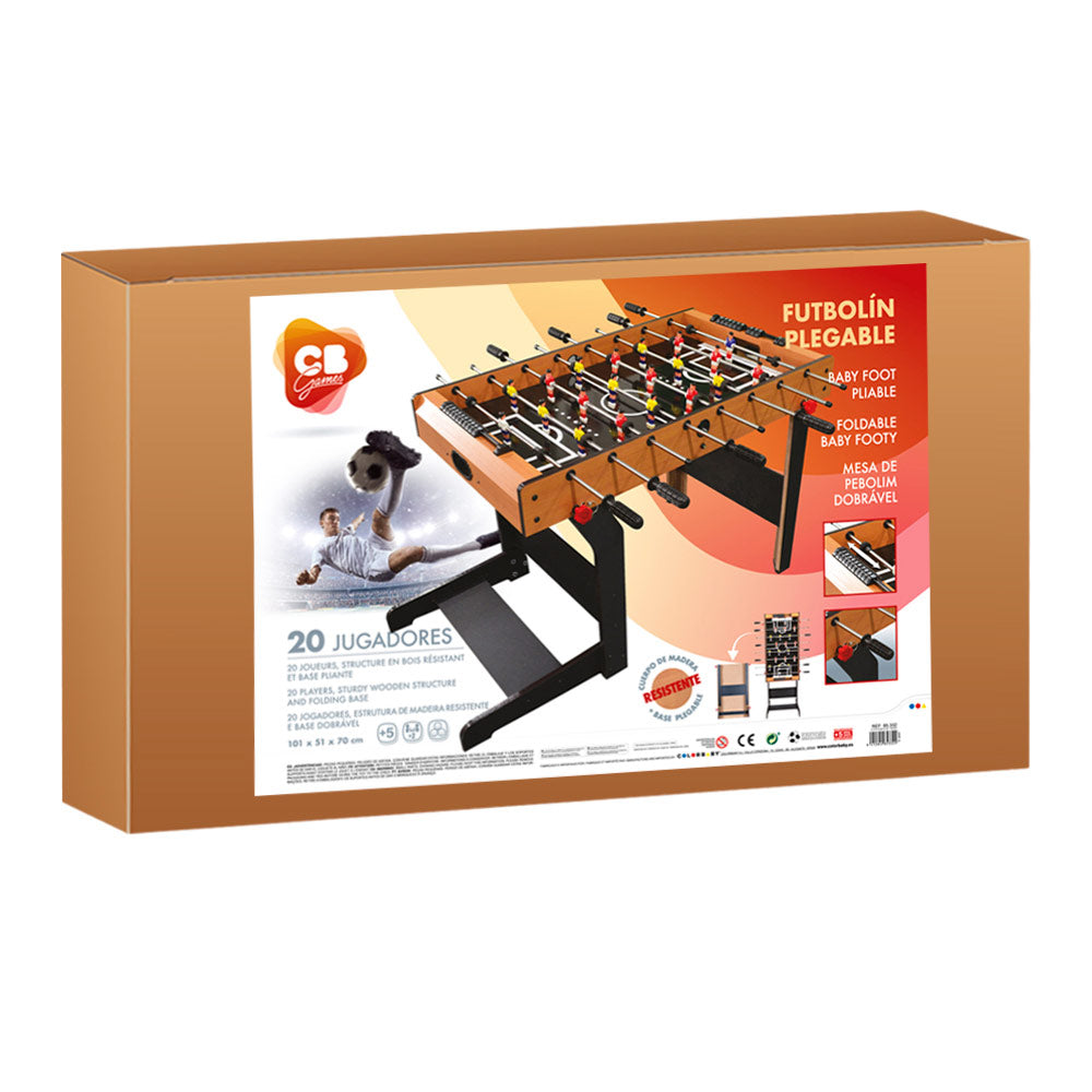 Con el futbolín plegable puede jugar todo el mundo, pero se recomienda a partir de los 5 años. Cuando lo pruebes no podrás dejar de jugar. Pueden jugar de 2 a 4 personas. El futbolín plegable tiene un mecanismo de fijación que asegura que las patas no se muevan durante el juego. ¡Diviértete en familia con el futbolín de CBgames!