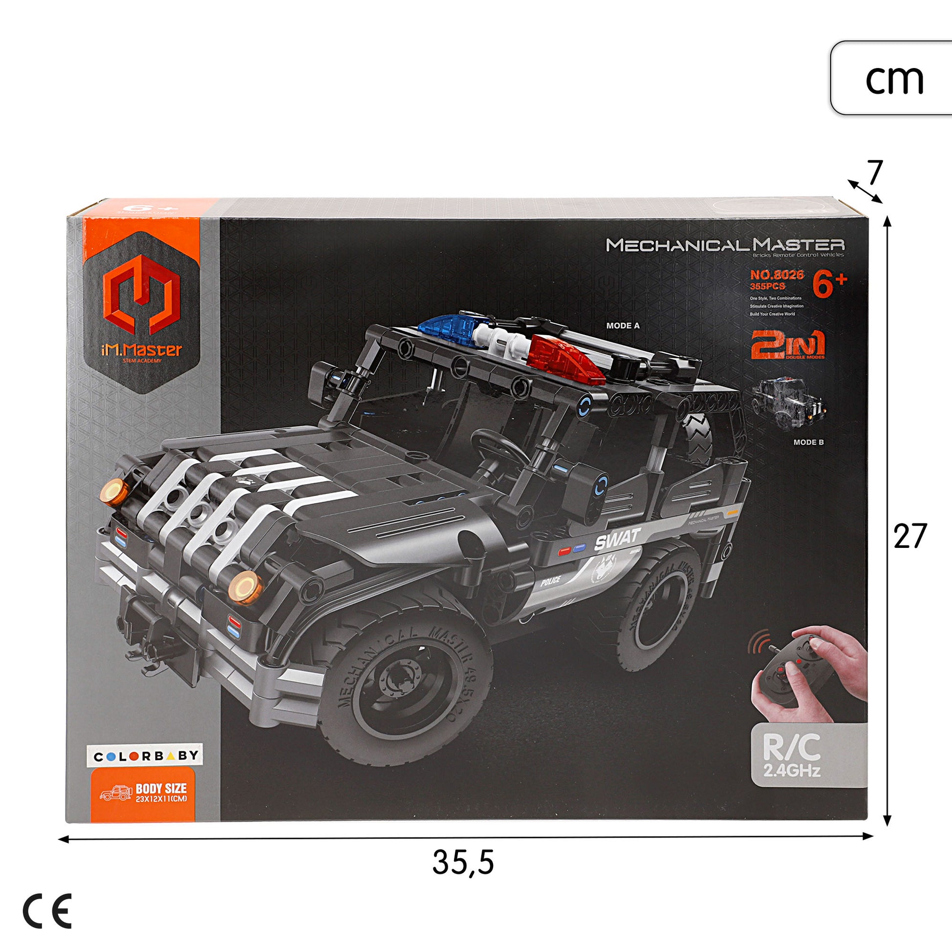 ¡Construye tu propio coche de policía y patrulla la ciudad! Si eres un pequeño agente de la ley que disfruta construyendo y jugando con vehículos teledirigidos, este set de construcción iM.Master es para ti. Gracias a las 355 piezas incluidas en este juego de construcción, podrás montar dos versiones de un vehículo policial con estructura reforzada y simulación de luces de emergencia en el techo. Además, gracias a su control remoto, podrás dirigirlo en todas direcciones e imaginar situaciones de rescate.