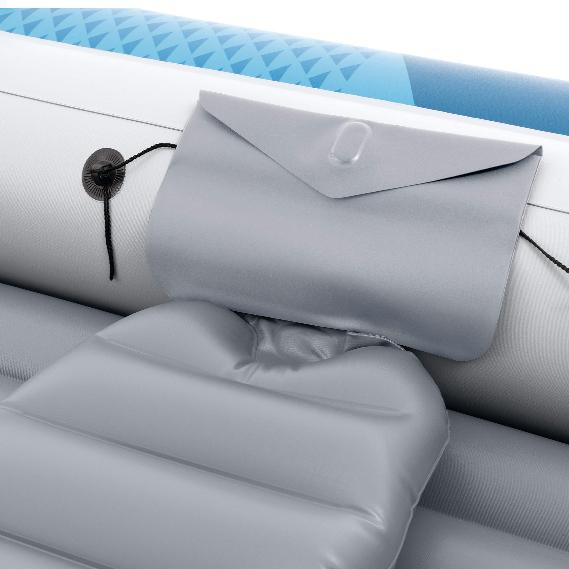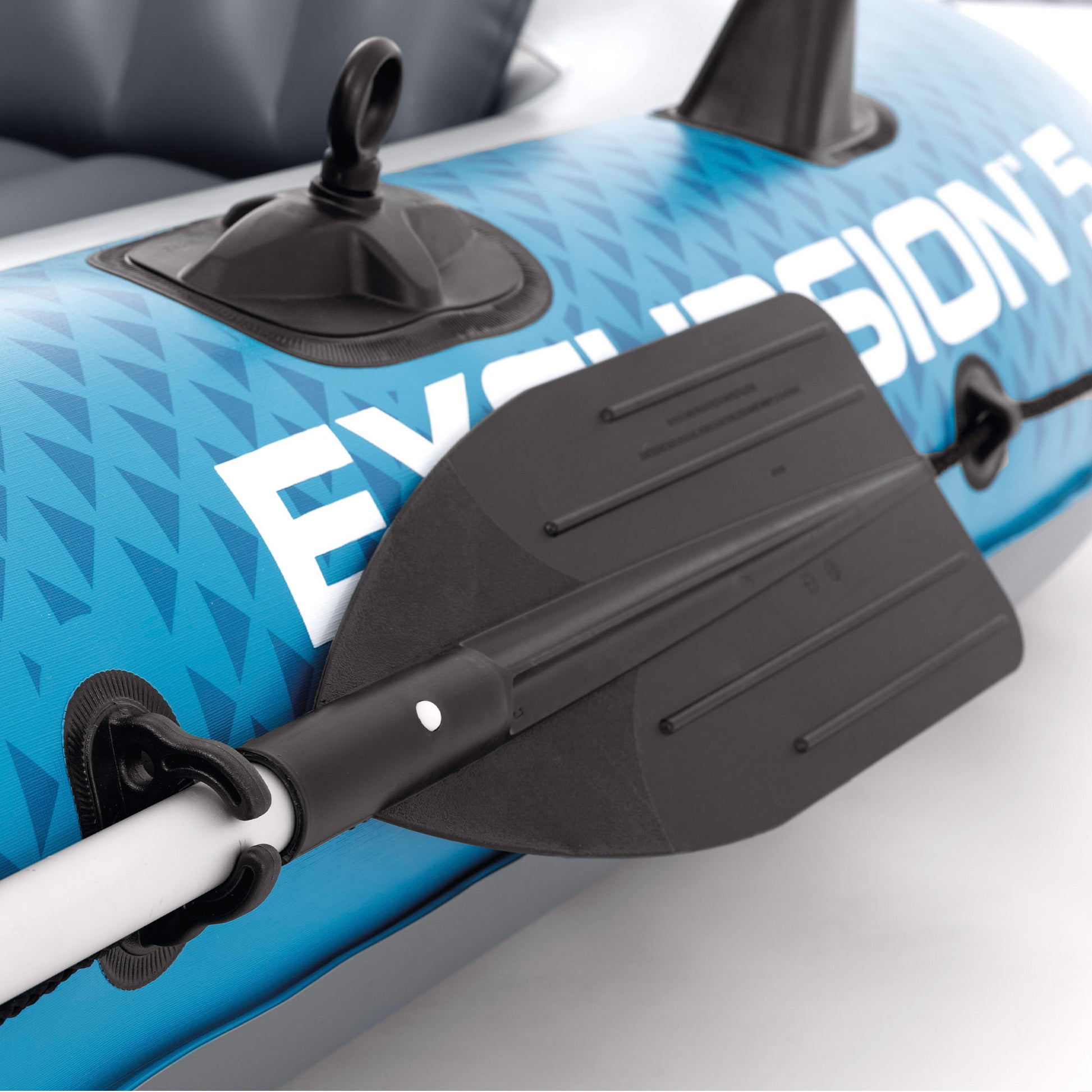 Con la barca Excursion 5 tenéis todo lo necesario para salir a navegar: 2 remos de aluminio desmontables, 3 asientos hinchables (2 de los cuales tienen respaldo), una bomba manual de hinchado, horquillas y fijaciones para colocar los remos en los laterales, cuerda de agarre que rodea toda la barca y asa en la proa para moverla mejor desde la orilla. Incorpora dos apoyos y cuatro agujeros para colocar cañas de pescar, un práctico soporte trasero para motor (motor no incluido), una bolsa para herramientas u objetos personales y un parche de reparación para pequeños imprevistos. Además, incluye una bolsa de transporte para poder llevar la barca fácil y cómodamente todas partes.