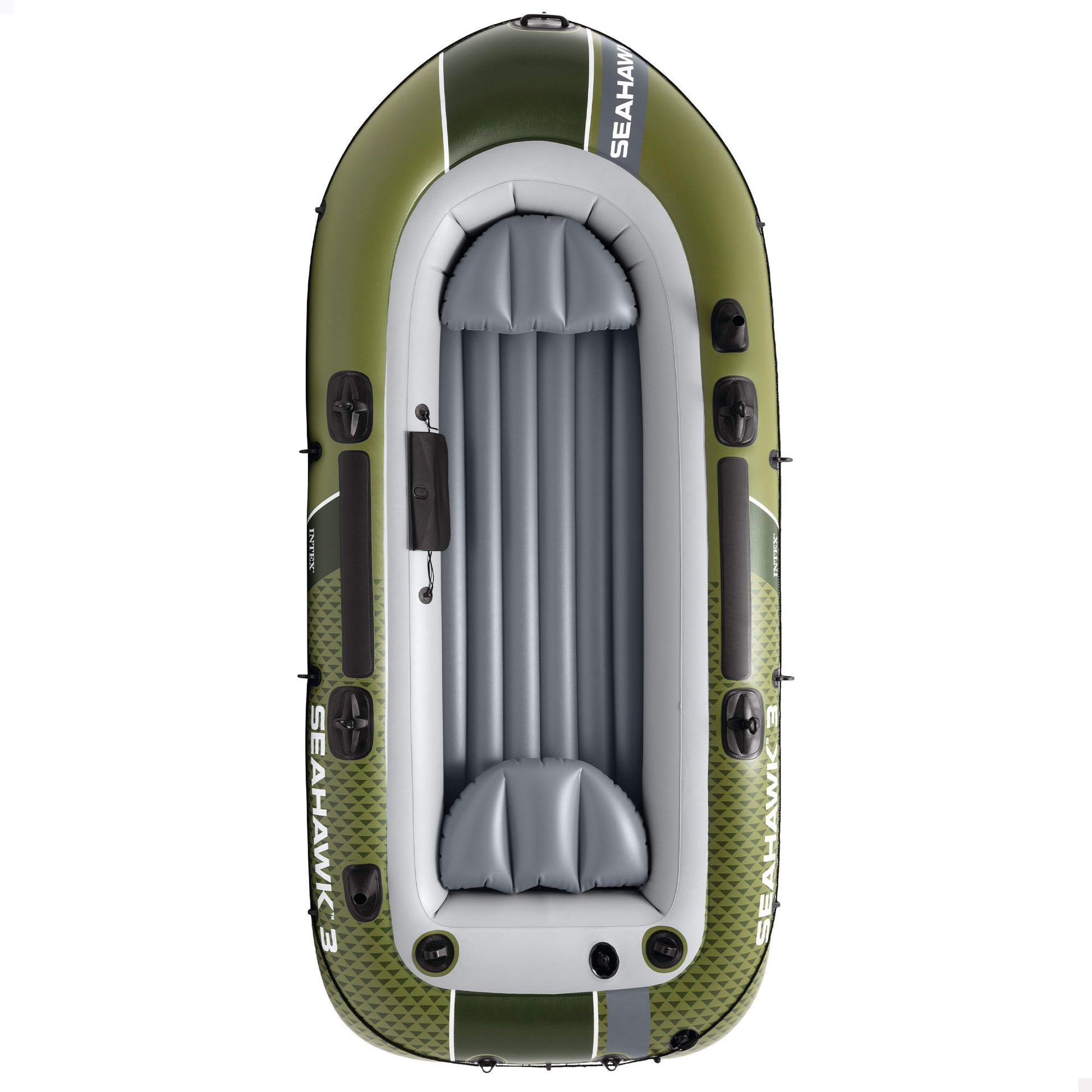 Imagina subirte a esta barca hinchable, remar juntos y explorar la orilla del lago o del embalse mientras jugáis y os refrescáis. La INTEX Seahawk 3 es una barca hinchable para 3 personas, con diseño deportivo en verde y gris, pensada para paseos tranquilos y pequeñas salidas de pesca en aguas calmadas. Su interior es amplio y cómodo para sentarse, remar y descansar sobre el agua, y la borda elevada ayuda a proteger el interior de las salpicaduras. Gracias a su suelo hinchable y a su estructura estable, la sensación es la de ir en una “mini lancha” recreativa, perfecta para peques curiosos y familias aventureras.