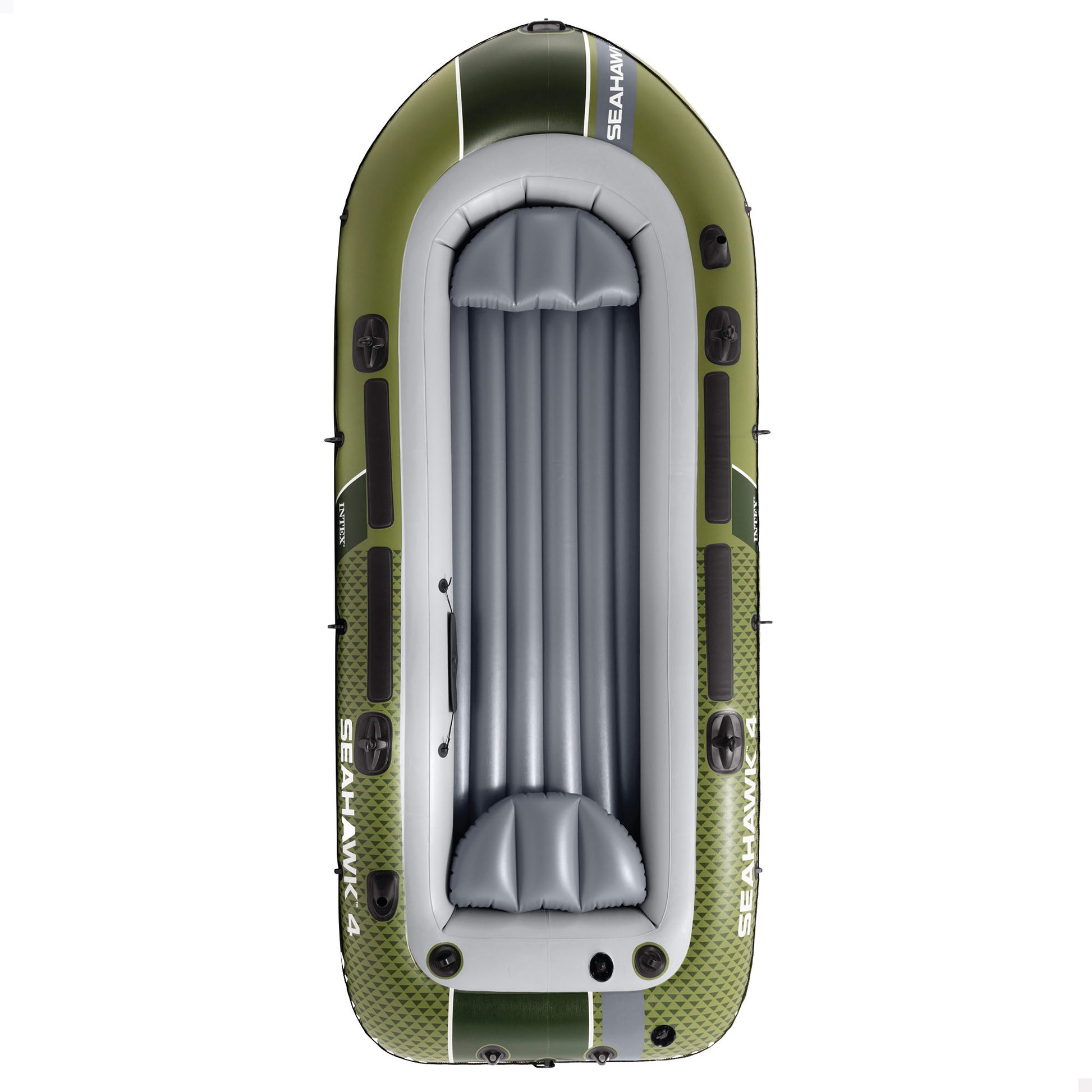 Imagina subirte a esta barca hinchable, remar juntos y explorar la orilla del lago o del embalse mientras jugáis y os refrescáis. La INTEX Seahawk 4 es una barca hinchable para 4 personas, con diseño deportivo en verde y gris, pensada para paseos tranquilos y pequeñas salidas de pesca en aguas calmadas. Su interior es amplio y cómodo para sentarse, remar y descansar sobre el agua, y la borda elevada ayuda a proteger el interior de las salpicaduras. Gracias a su suelo hinchable y a su estructura estable, la sensación es la de ir en una “mini lancha” recreativa, perfecta para peques curiosos y familias aventureras.