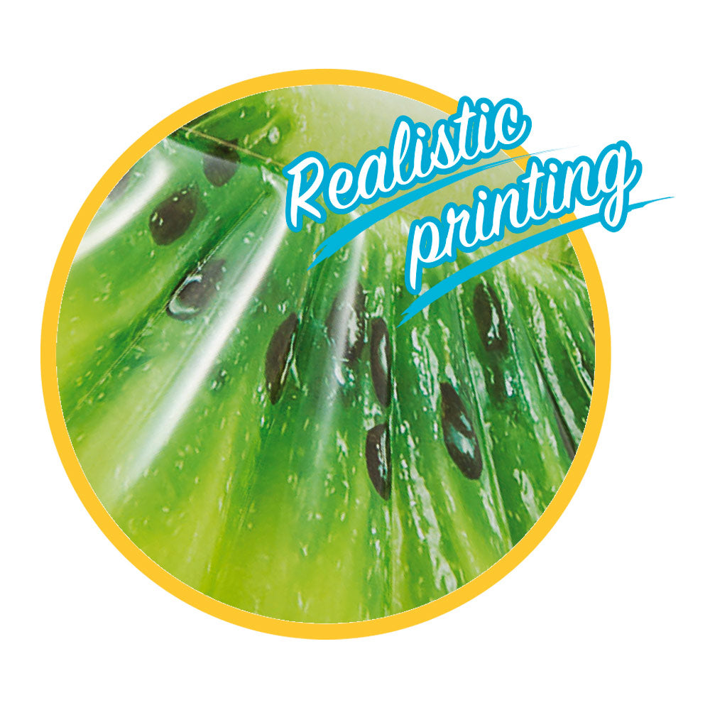 Colchoneta hinchable INTEX con forma de rodaja de kiwi. Este colorido hinchable tiene diseño con impresión fotorrealista que hace que parezca de verdad. Sus medidas son 76 x 170 cm, es de tamaño individual y soporta un máximo de 100 kg. Túmbate, siéntate o apóyate cómodamente en el hinchable gracias a su forma acanalada. Incluye kit con parche. ¡Vive un verano diferente con INTEX!