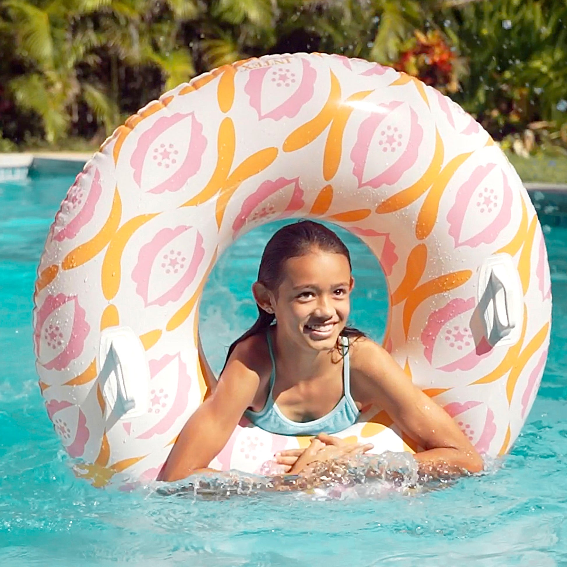 Disfruta en la playa o en la piscina con este increíble flotador hinchable con forma de rueda y con ilustraciones vintage color naranja y rosa. ¡Todos querrán uno igual! Está fabricado de PVC resistente, cuenta con 1 cámara de aire e incorpora dos asas laterales para más seguridad. Tiene capacidad para 1 persona y soporta 100 kg. Incluye parche de reparación para arreglar posibles poros o pequeños pinchazos.