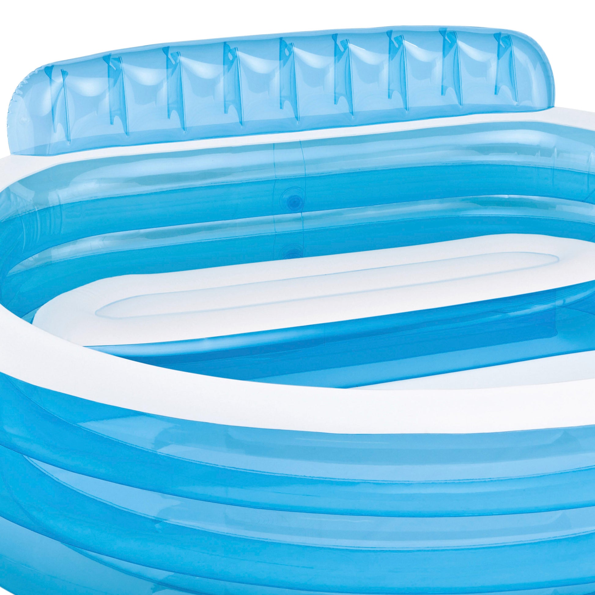 INTEX te trae esta original piscina familiar con respaldo, asiento, 2 portabebidas y espacio de sobra para refrescaros en familia. Fabricada en vinilo resistente, las medidas de esta piscina son 229 cm de ancho x 218 cm de largo x 79 cm de alto, y tiene capacidad para 590 litros de agua. La estructura de la piscina está formada por 3 aros hinchables translúcidos y cuenta con un asiento y respaldo hinchables donde sentaros relajadamente mientras los peques juegan en el agua. Gracias a los 2 porta bebidas que lleva, tendréis vuestras bebidas para refrescaros e hidrataros siempre a mano.