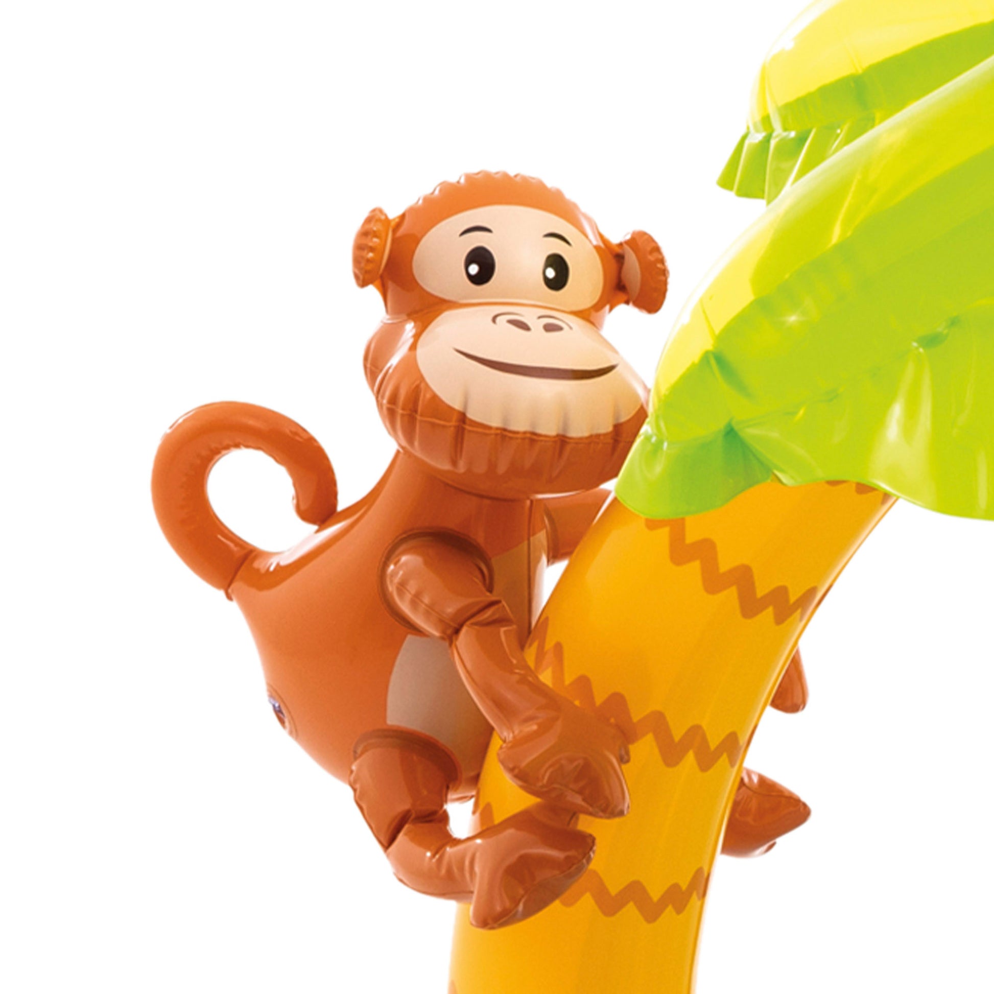 Piscina hinchable INTEX para bebés, con diseño y forma de isla tropical para que se refresquen y diviertan durante el verano. Está fabricada de vinilo resistente y tiene capacidad para 45 litros de agua. Incorpora parasol en forma de palmera e incluye mono, iguana y loro hinchable. Viene con parche de reparación para arreglar pequeños poros o pinchazos. Se recomienda usar bajo supervisión adulta.