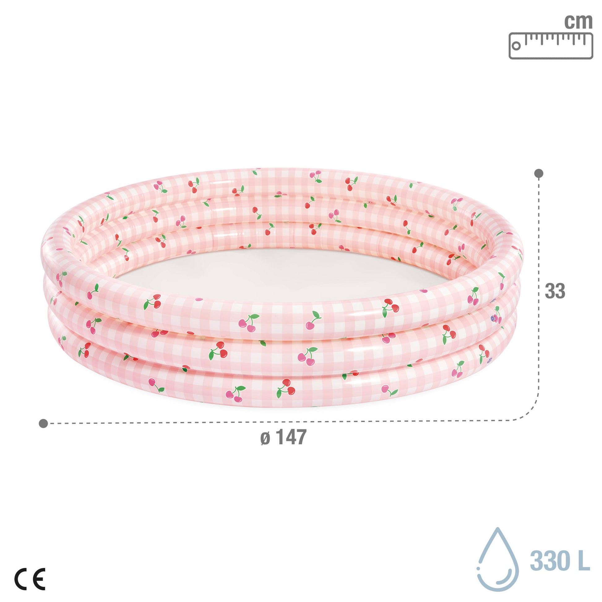Con 147 cm de diámetro y 33 cm de altura, y una capacidad de 330 litros, esta piscina es el lugar ideal para que los niños se refresquen y jueguen durante el verano, siempre bajo supervisión adulta. Su estructura cuenta con tres cámaras de aire independientes y está fabricada con vinilo resistente de 0,20 mm de grosor en las paredes y 0,18 mm de grosor en el suelo, lo que garantiza seguridad y durabilidad. Su diseño ligero y compacto facilita tanto el inflado como el desinflado.