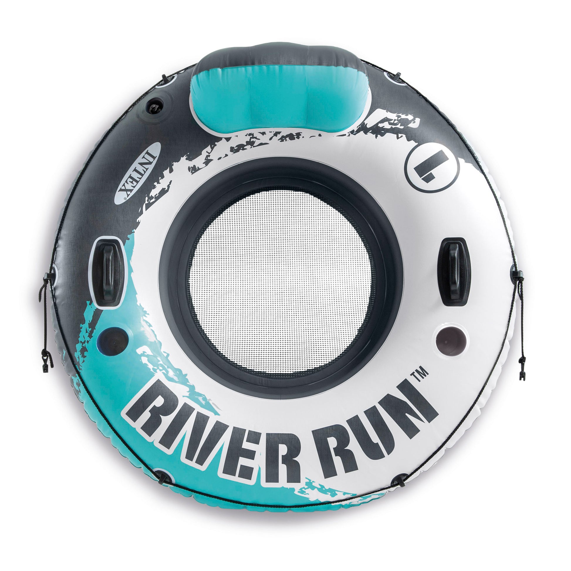 Rueda hinchable INTEX de la línea River Run diseñada en colores rojo, blanco y gris. Mide hinchada Ø135 cm y está fabricada en PVC, material vinílico altamente resistente con 0,45 mm de espesor. Cuenta con respaldo para relajarse con total comodidad, asiento de rejilla, 2 porta bebidas, 2 cámaras de aire, 2 asas de sujeción y cuerda de agarre/transporte para mayor seguridad. También incorpora conectores para unirse a otras ruedas River Run o a neveras Megal Chill INTEX. Además, incluye un parche de reparación para arreglar posibles poros o arañazos. Tiene capacidad para una persona y soporta un peso máximo de 100 kg.