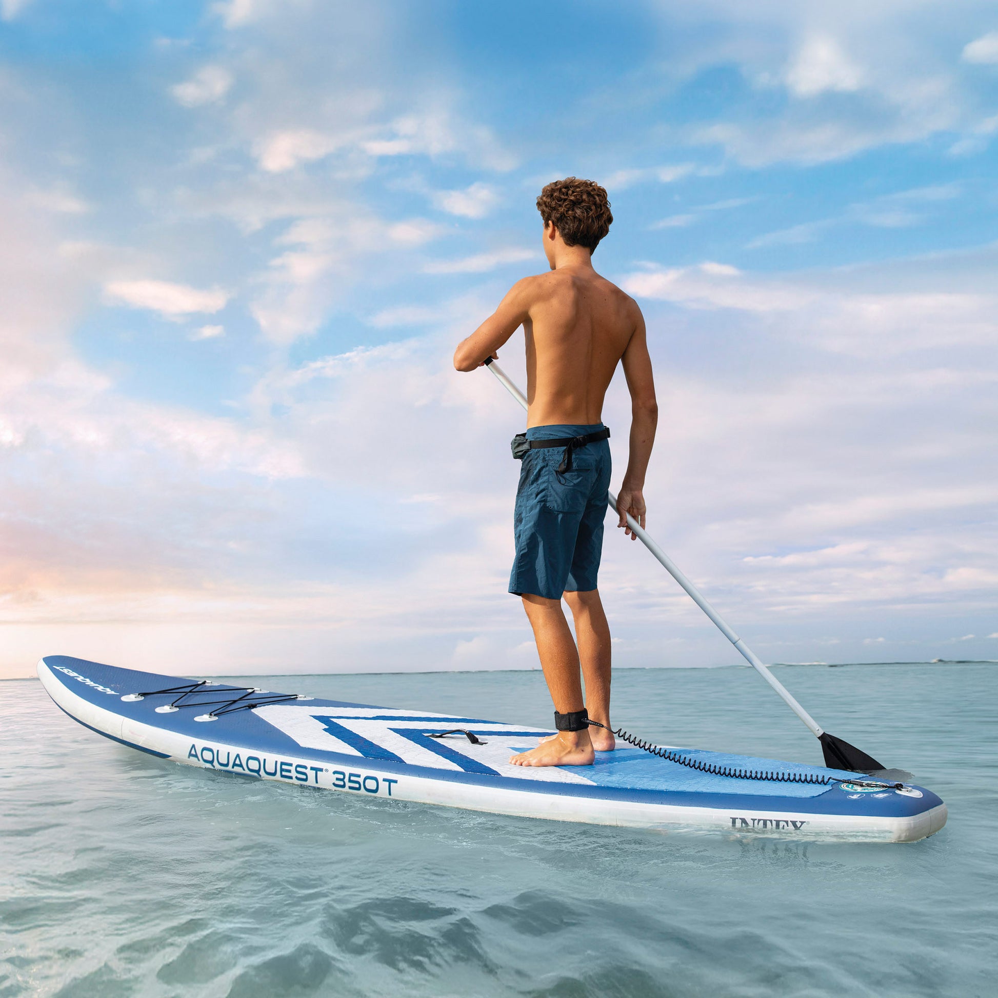 Practicar paddle surf con la AquaQuest 350T no solo es una forma divertida de pasar el tiempo libre, también ayuda a mejorar la condición física y el bienestar general. El SUP trabaja el equilibrio y la fuerza del core, fortalece brazos, piernas y espalda y favorece la coordinación y la motricidad global al combinar postura, remada y control de la tabla. Además, realizar la actividad al aire libre y en contacto con el agua contribuye a reducir el estrés, despejar la mente y fomentar hábitos de vida activos y saludables en familia o con amigos.