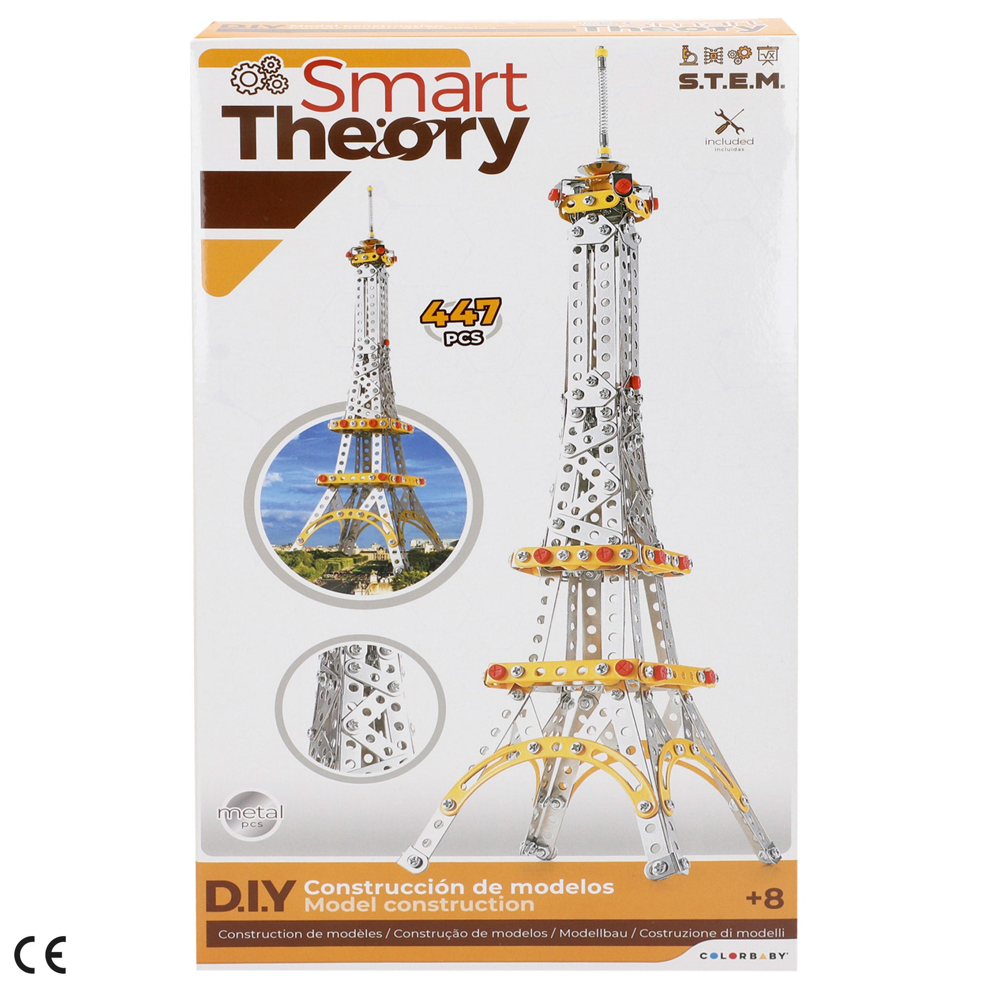 El juguete de construcción contiene 447 piezas de diferentes formas y colores de metal o plástico imprescindibles para el montaje de la torre. Contiene herramientas y un manual de instrucciones para ensamblar la famosa construcción.