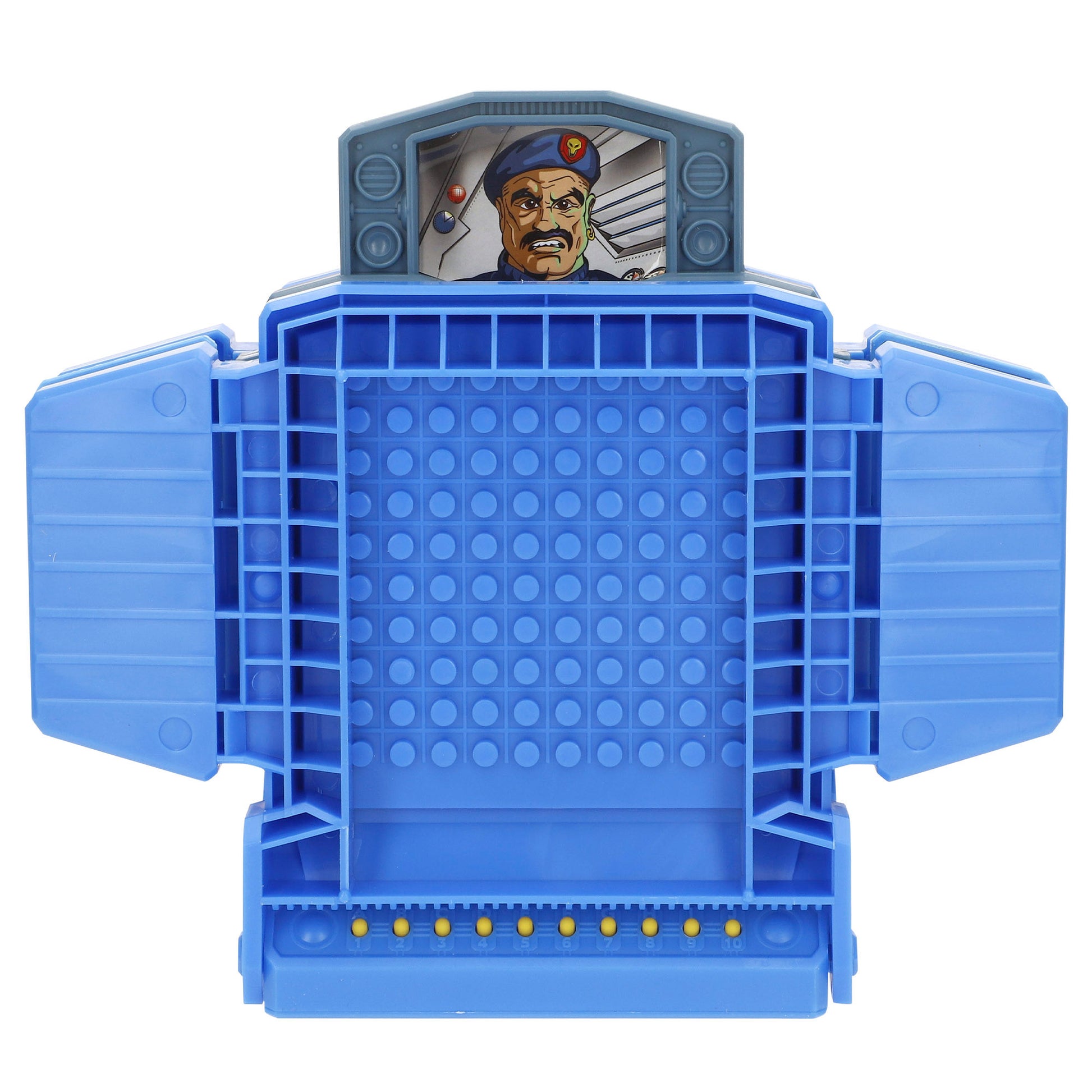El set está compuesto por un tablero plegable con diseño portátil, dos paneles de juego y todas las piezas necesarias para jugar partidas divertidas: 2 flotas con 5 barcos de distintos tamaños, 68 clavos rojos para marcar impactos de misiles, 200 clavos blancos para marcar fallos de misiles, 4 clavos de cabeza nuclear para marcar el área de impacto y 4 clavos de satélite para marcar objetivos.