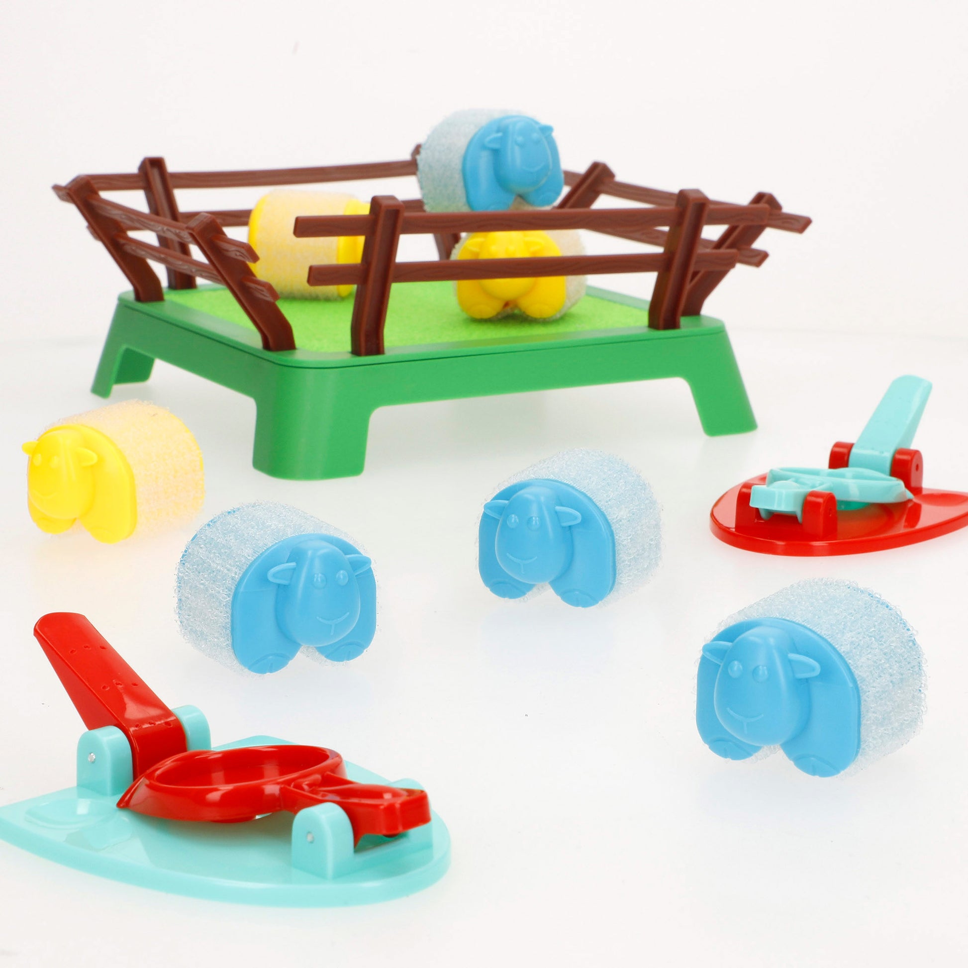 El juego viene con todo lo necesario: 16 ovejas cubiertas de velcro que se adhieren entre sí, 4 trampolines para lanzarlas y 1 corral donde apilarlas. También incluye una hoja de instrucciones que explica las reglas del juego de forma clara, para que puedas empezar a jugar en pocos minutos.