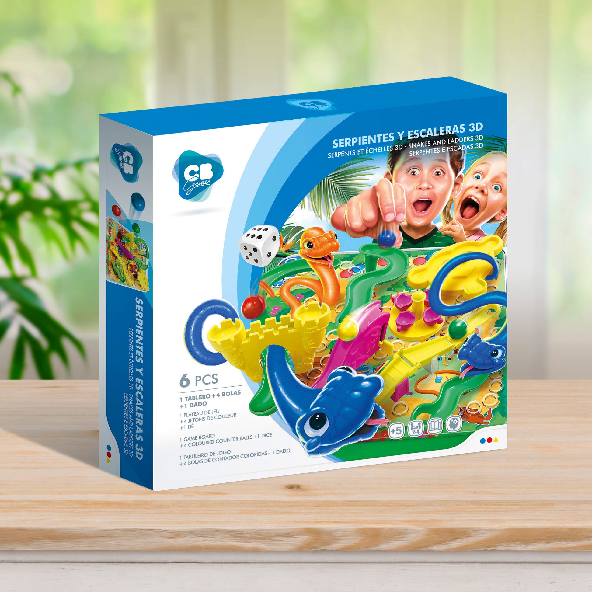 ¡Diviértete con el juego de serpientes y escaleras en versión 3D! Con está versión renovada del clásico juego de serpientes y escaleras te divertirás junto a tus amig@s como nunca antes lo habías hecho. Lanzad el dado y avanzad por el tablero superando las pruebas que indican. Incluye 1 tablero, 4 bolas y 1 dado. Desarrolla razonamiento, aprendizaje y socialización. Está pensado para 2-4 jugadores a partir de los 5 años.