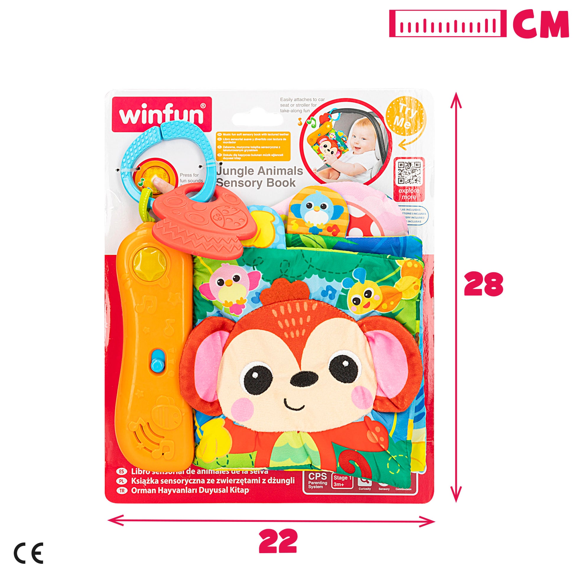 Los juguetes Winfun están diseñados bajo el concepto CPS Parenting System. Esta exclusiva clasificación permite a los padres seleccionar el juguete ideal según la edad y necesidad de desarrollo de su hijo. Según el CPS Parenting System, este libro sensorial pertenece a la Etapa 1 (0-6 meses). Durante esta fase, a los bebés les benefician juguetes que estimulan sus sentidos, les ayudan a descubrir el mundo que les rodea y fortalecen su vínculo emocional, como este libro sensorial. Funciona con 2 pilas AAA (incluidas) y es de tamaño perfecto para las pequeñas manos del bebé. ¡Un regalo perfecto para los más curiosos!