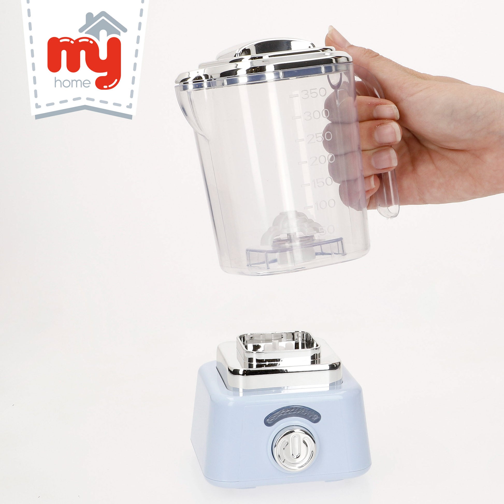 ¡Diviértete preparando deliciosos zumos de frutas con esta súper licuadora eléctrica de juguete My Home! Introduce las frutas que más te gusten en el vaso de la licuadora, pulsa el botón y ¡tu delicioso smoothie estará listo en un segundo!